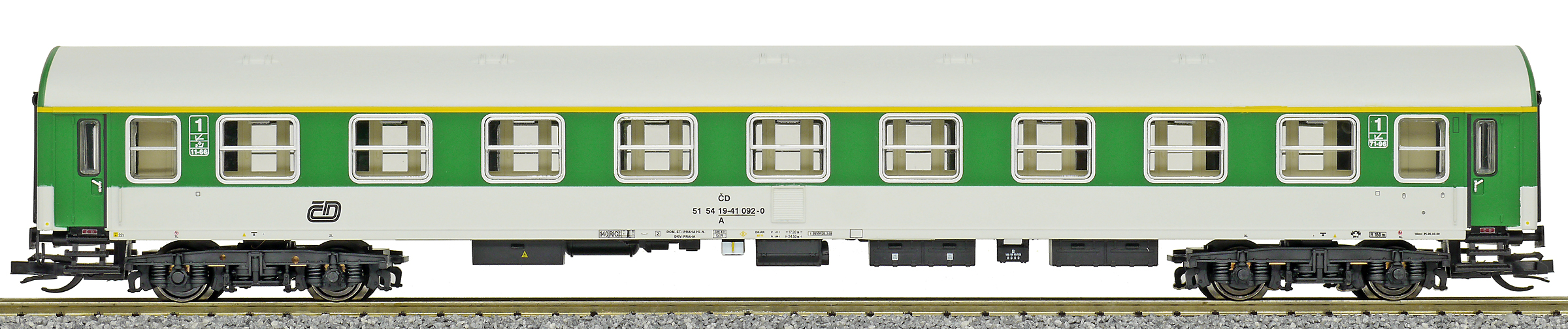 | rychlíkový vůz zelený-světle šedý 1. tř. |