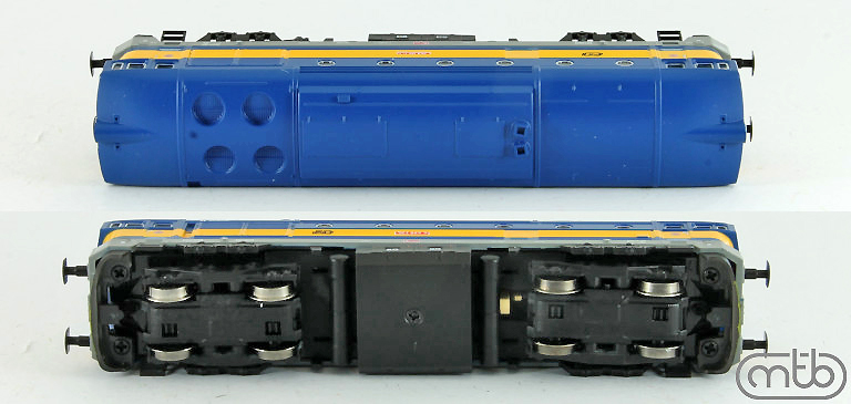 měřítko 1:120 - rozchod kolejí 12 mm osvětlení - 3 reflektory vpředu, 2 světla vzadu, přepínatelné podle směru jízdy 4 hnané nápravy 0 bandážovaných náprav kinematika krátkého spřáhla (KKK) podle normy NEM 358 digitální rozhraní podle NEM 658 s konektorem PluX16 setrvačník 137 mm - celková délka modelu přes nárazníky 4 - celkový počet náprav nebo rozložení náprav