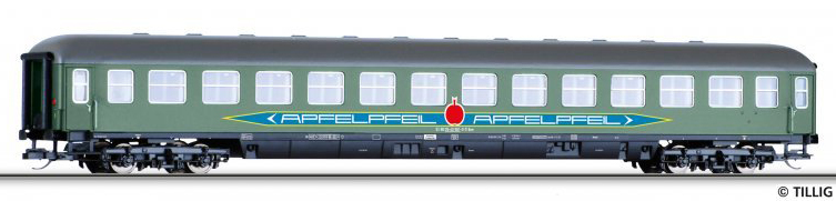 | lůžkový vůz tmavě zelený s potiskem „Apfelpfeil“ |