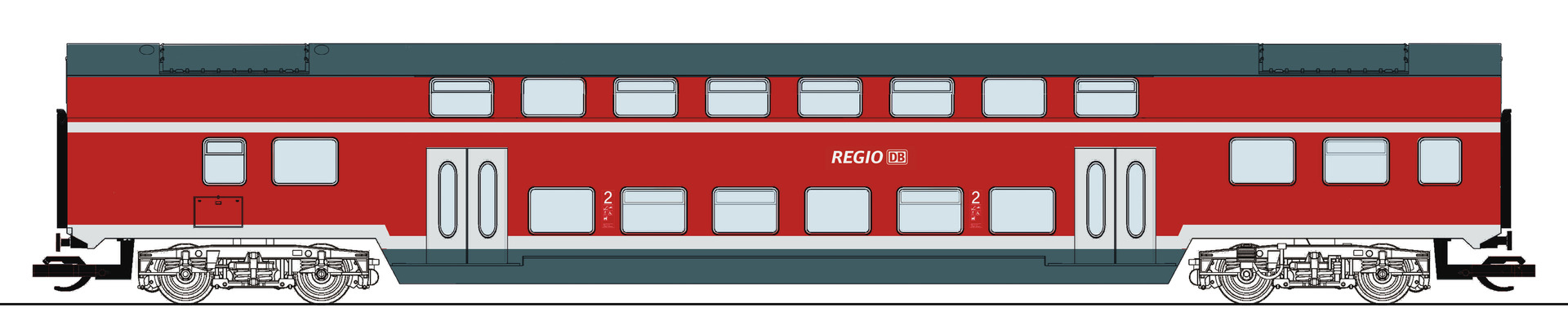 středový patrový vůz v barvách „Regio DB“ 2. tř.