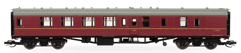| osobní vůz kaštanový s šedou střechou „Brake Second Corridor“ |