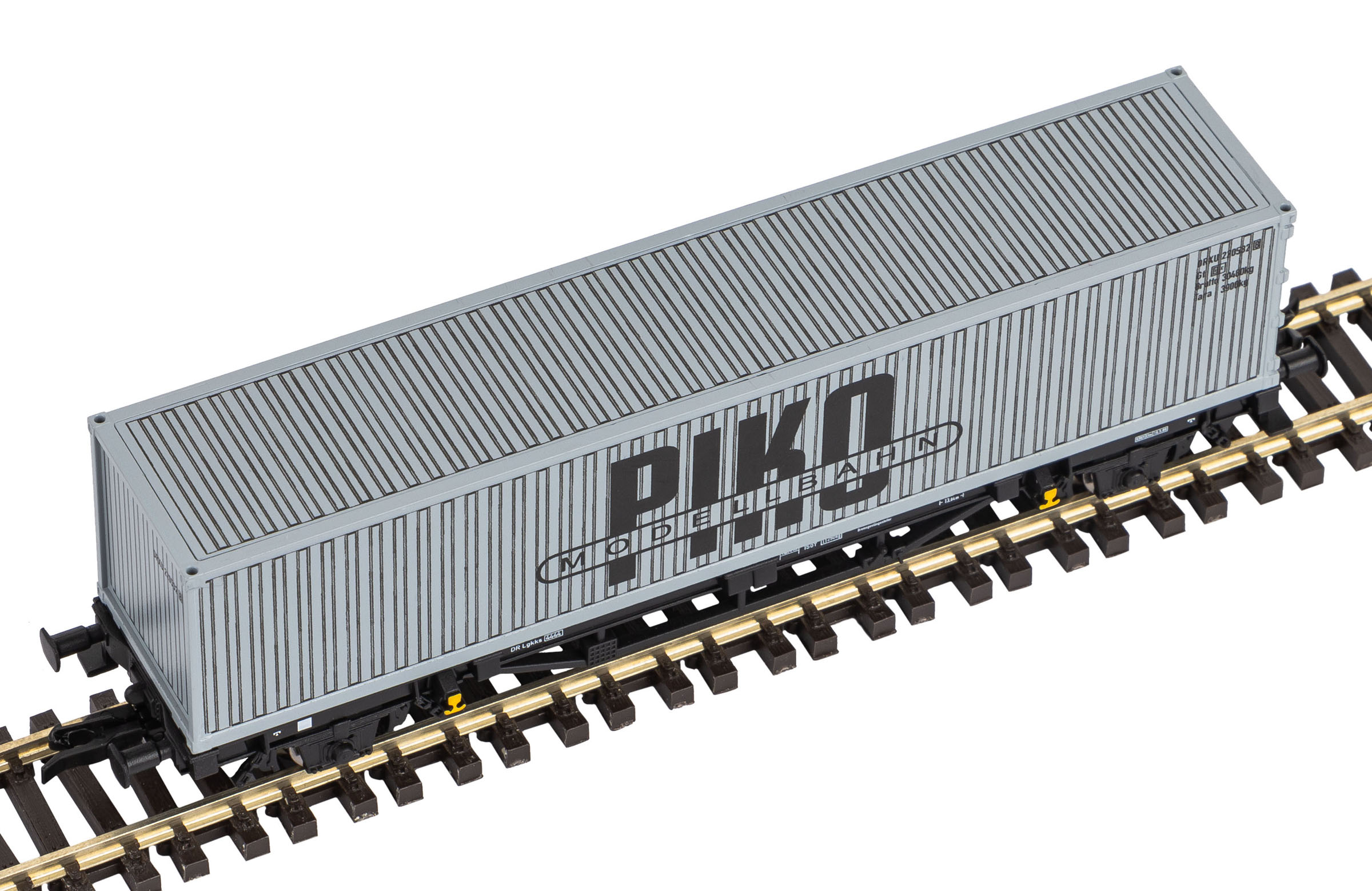 | plošinový vůz černý s nákladem 1x40' kontejneru „PIKO MODELLBAHN“ |