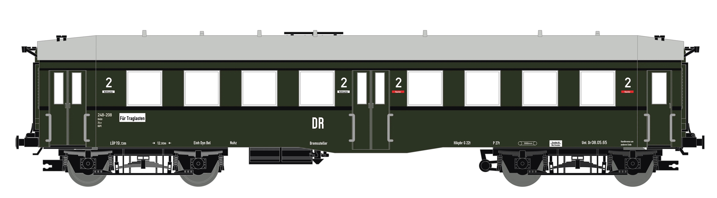 Popis   osobní vůz zelený s šedou střechou 2. tř.