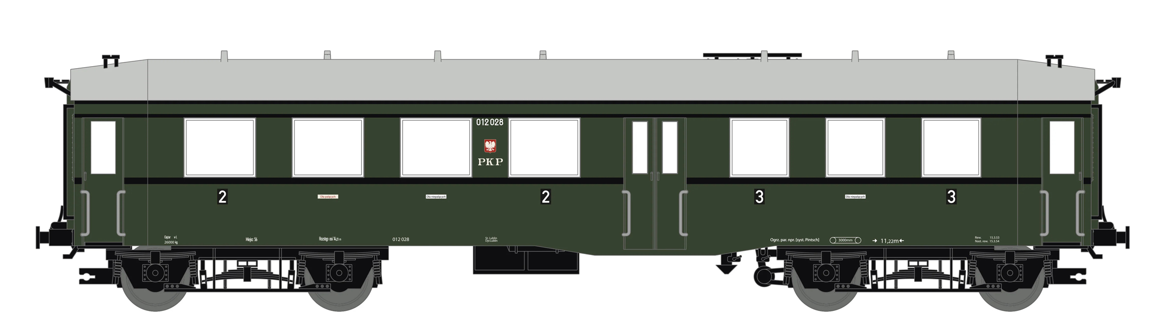 | osobní vůz zelený s šedou střechou 2./3. tř. |