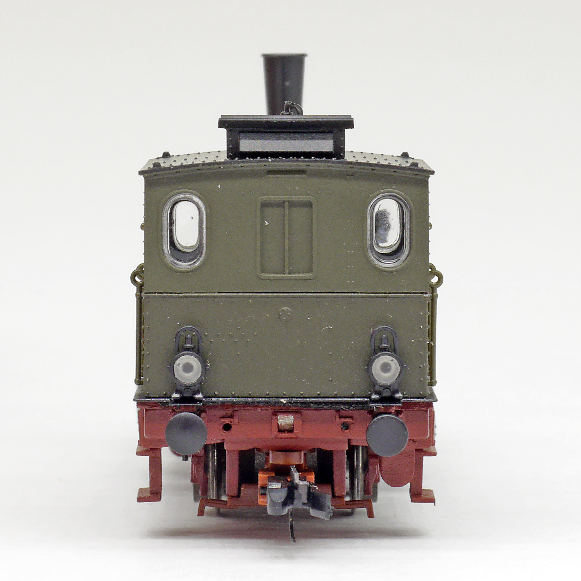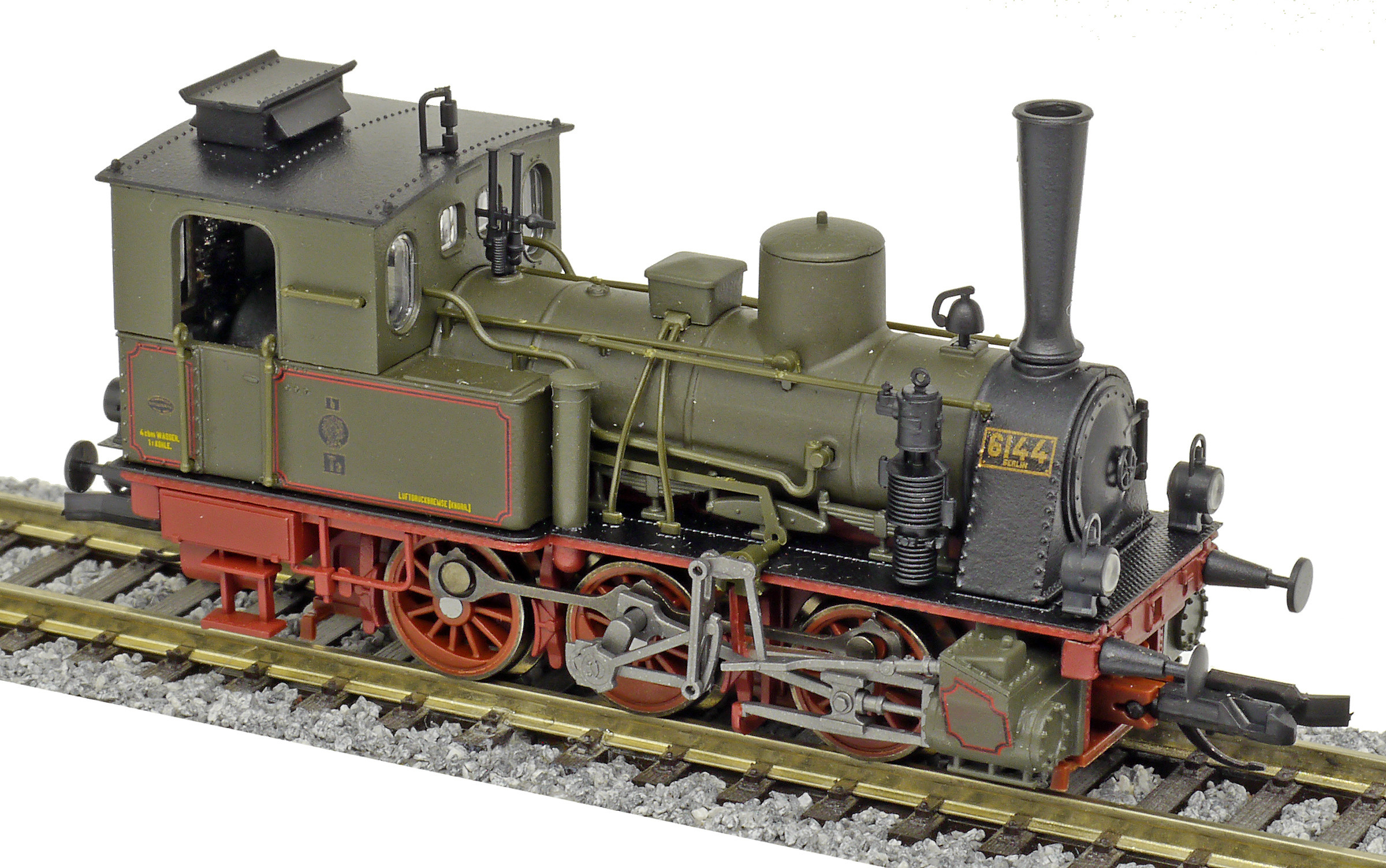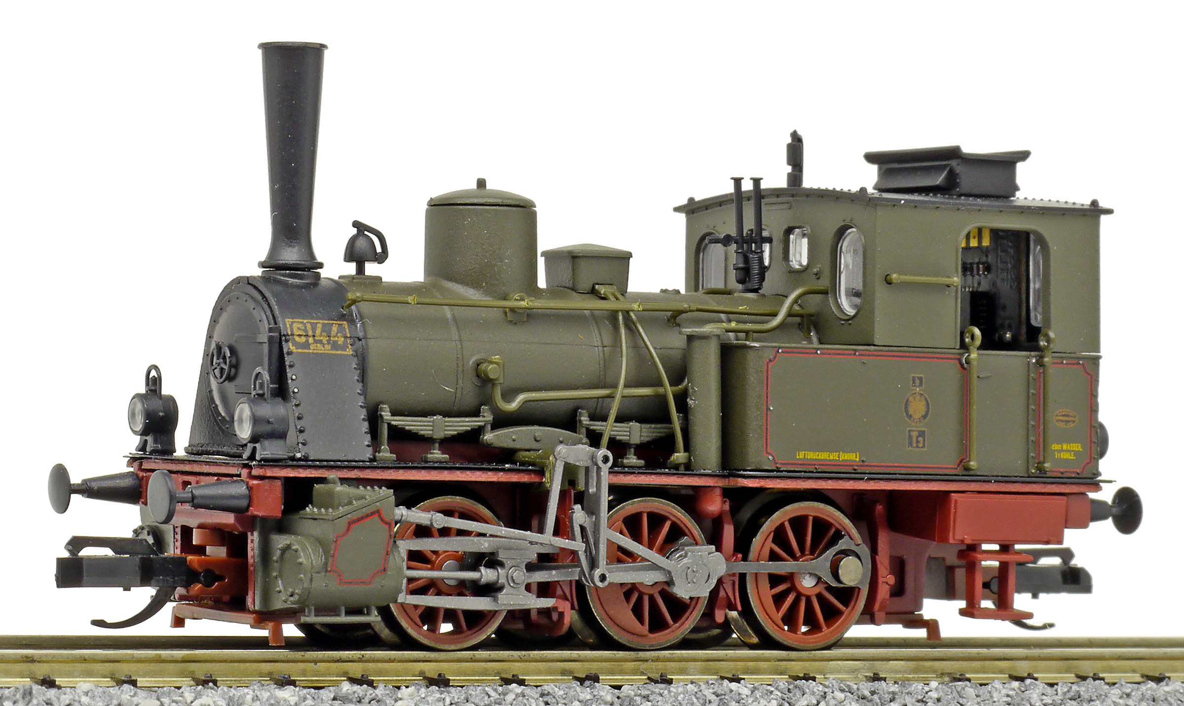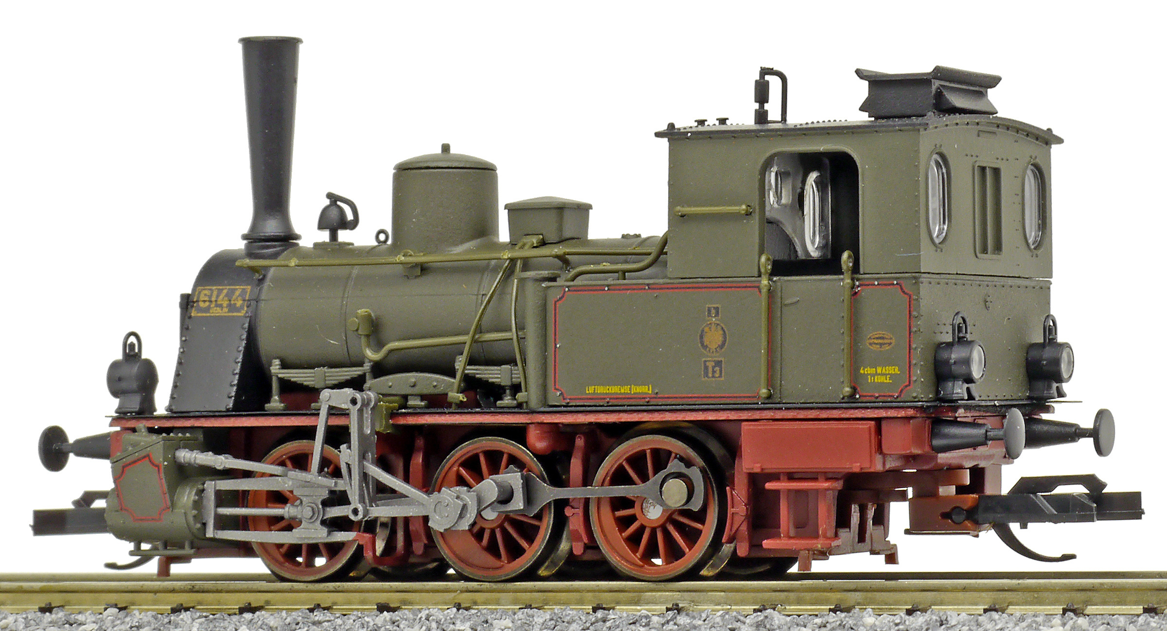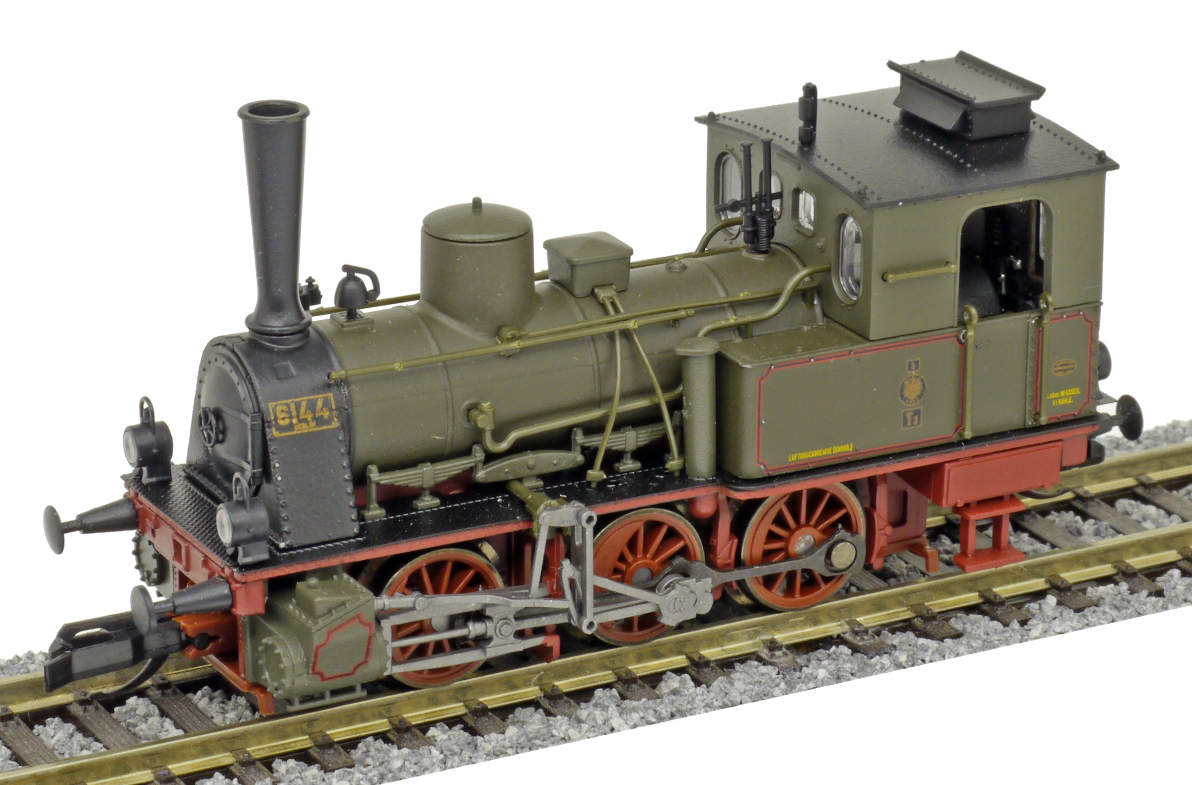 Popis   parní lokomotiva tmavě zelená s tmavě červeným pojezdem