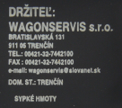 | • 83 56 9323 658-9 | → | nákladní, s podvozky, soukromý vůz, pro mezinárodní dopravu dle zvláštních úmluv |