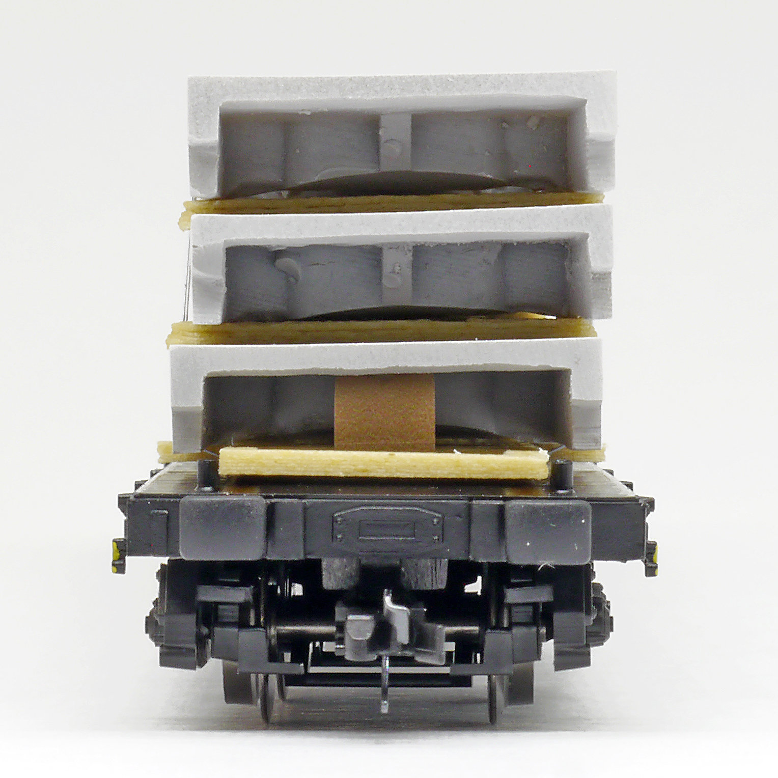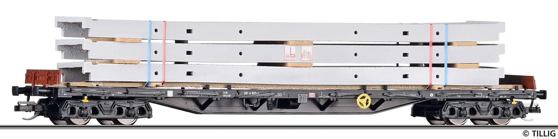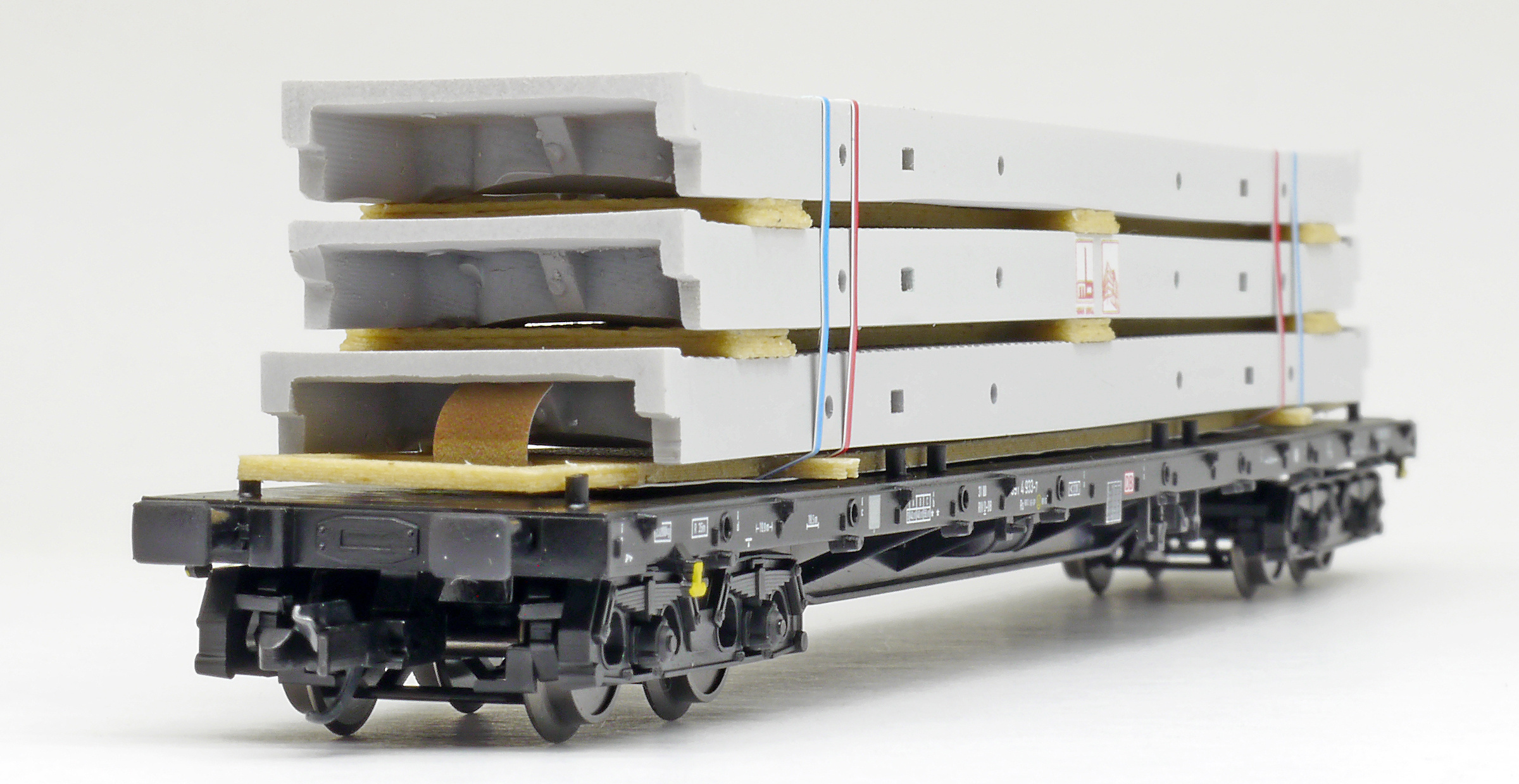 | nákladní plošinový vůz ložený korýtkovými stropními panely |