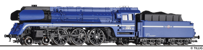 | parní lokomotiva modrá s kouřovými plechy „30 Jahre TILLIG“ |