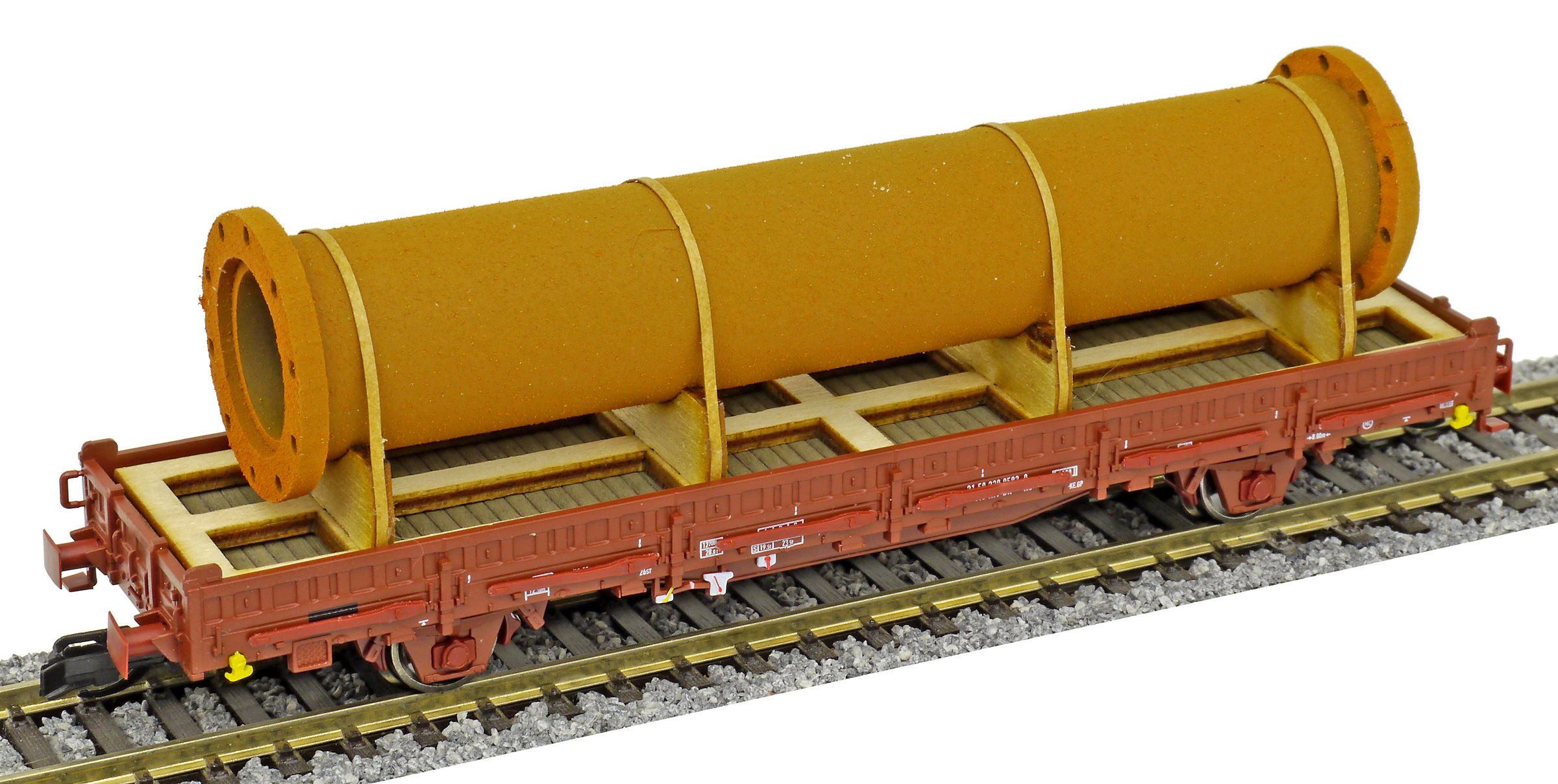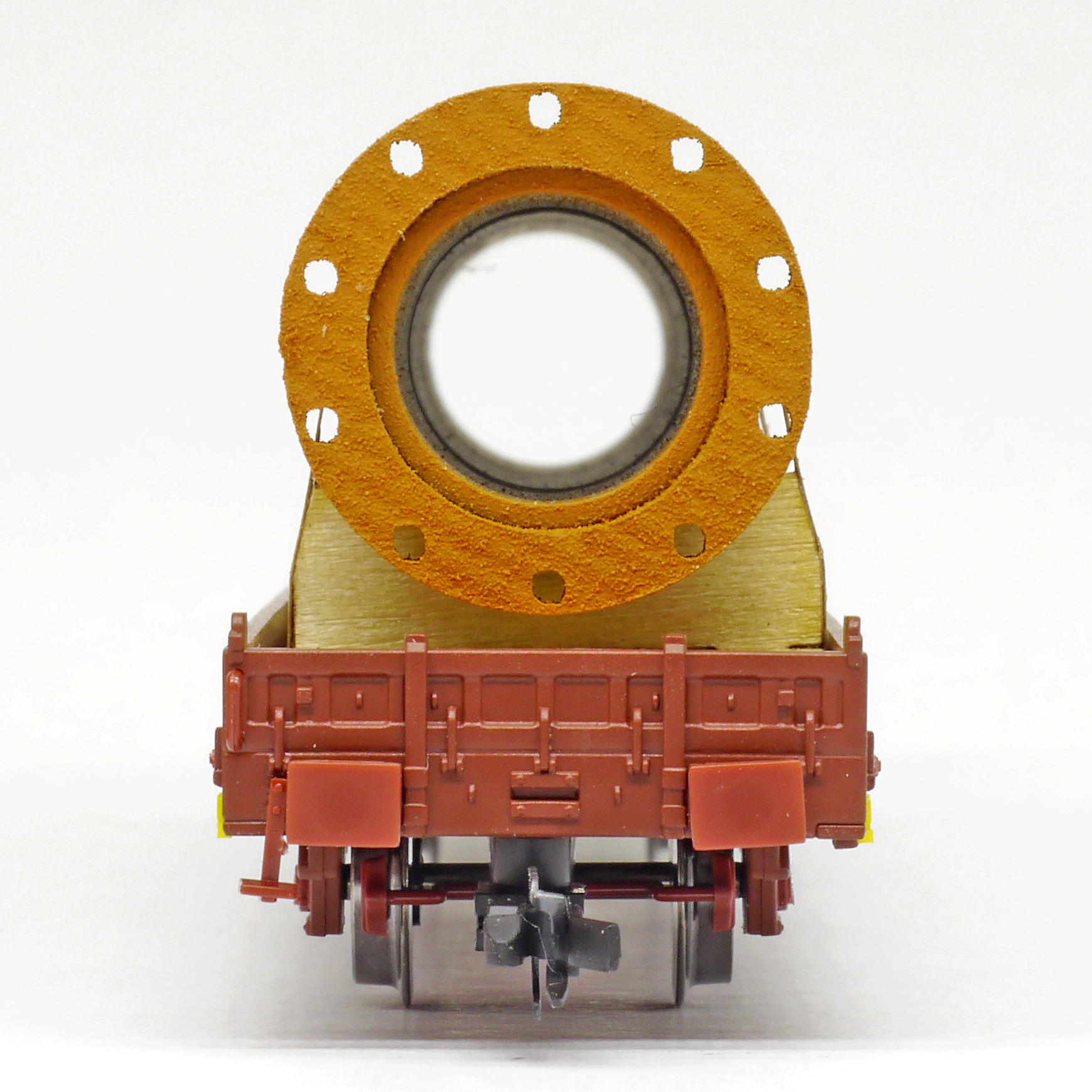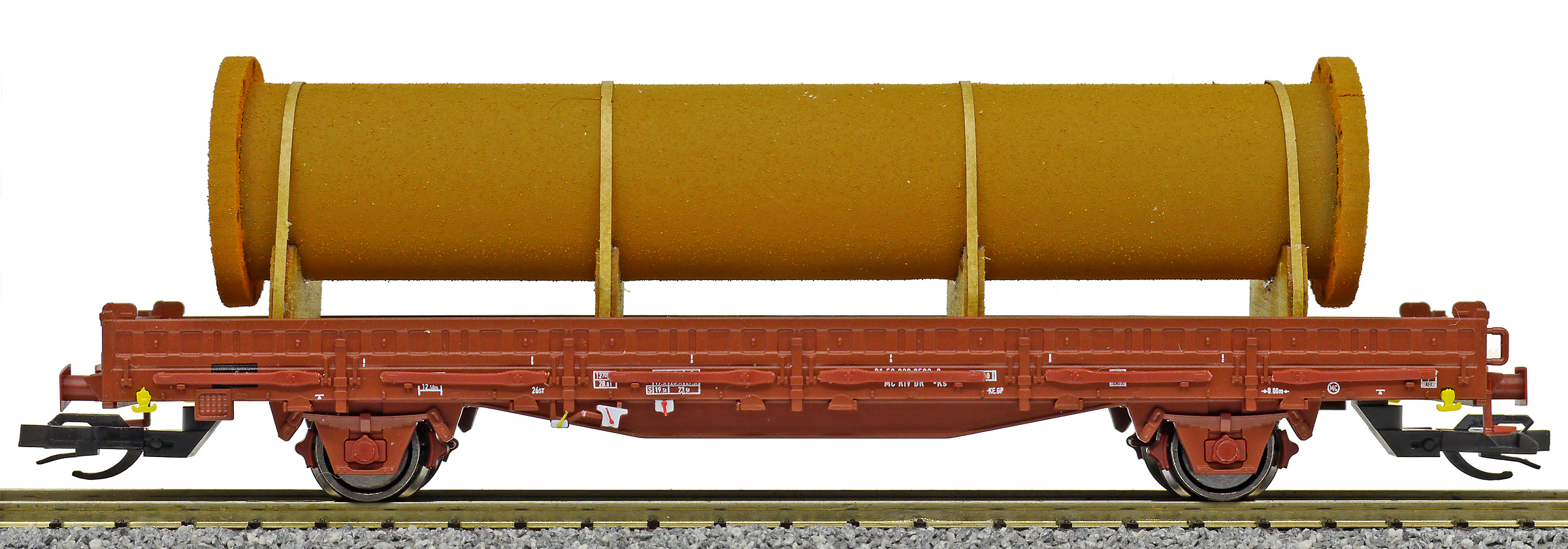 | nízkostěnný nákladní vůz červenohnědý s klanicemi s nákladem přírubové trubky |