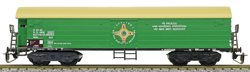 | nákladní chladící vůz zelený s krémovou střechou „AMOK“ |
