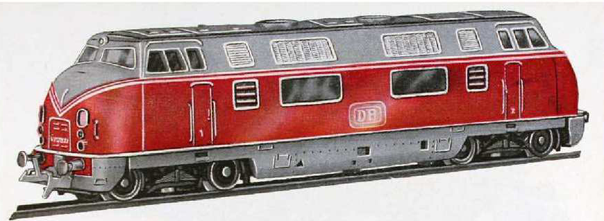 | dieselová lokomotiva červená-světle šedá s tmavě šedým rámem |