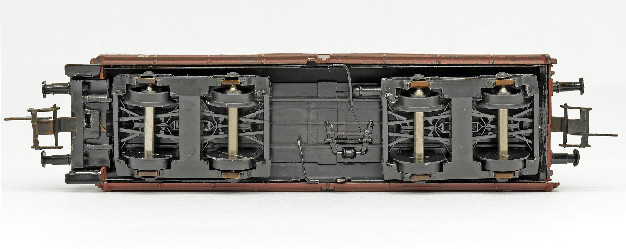 měřítko 1:120 - rozchod kolejí 12 mm nenormované uchycení spřáhla 475 mm - celková délka modelu přes nárazníky 6+4+4+4 - celkový počet náprav nebo rozložení náprav