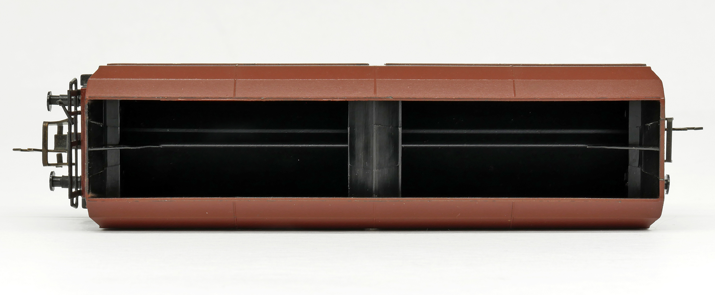 měřítko 1:120 - rozchod kolejí 12 mm nenormované uchycení spřáhla 108 mm - celková délka modelu přes nárazníky