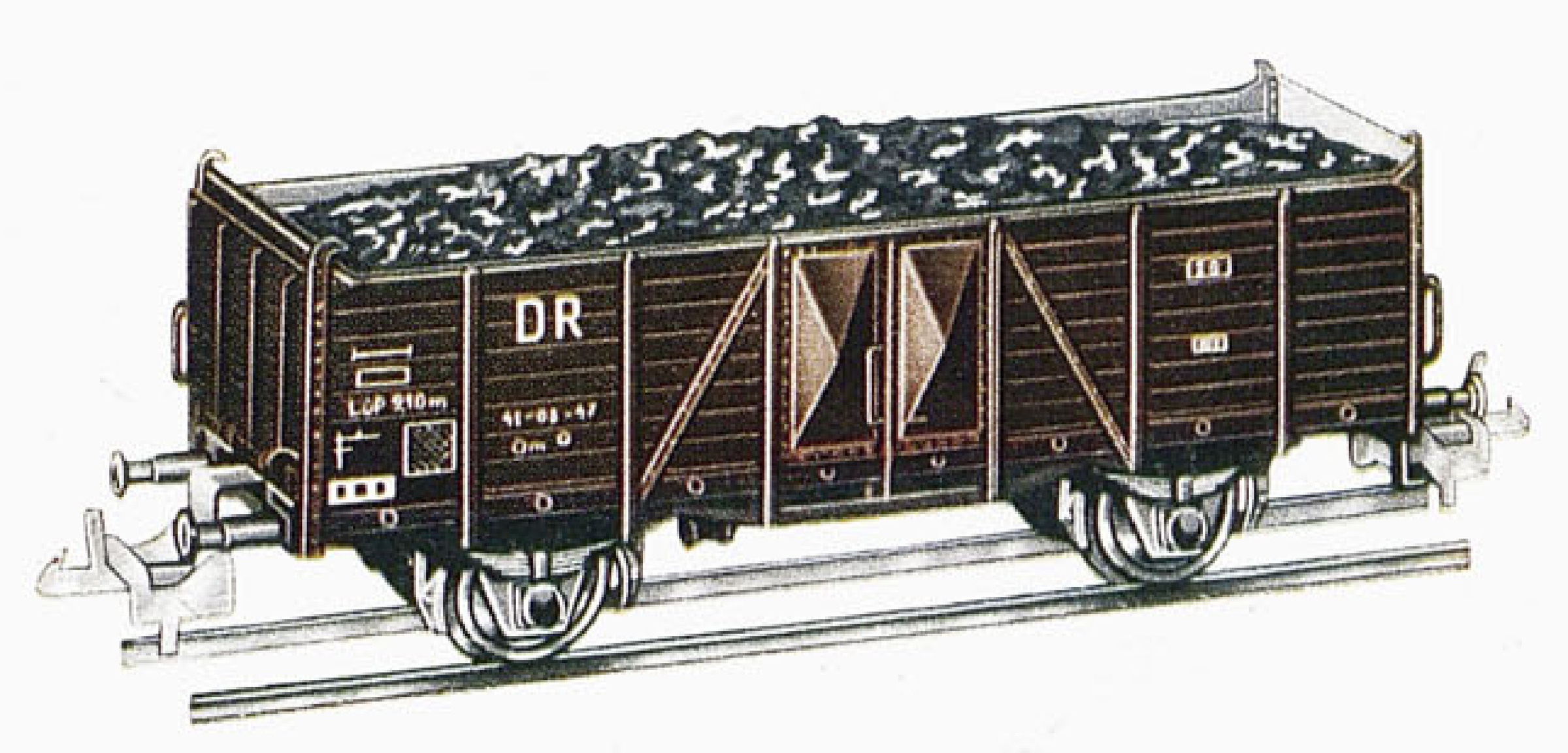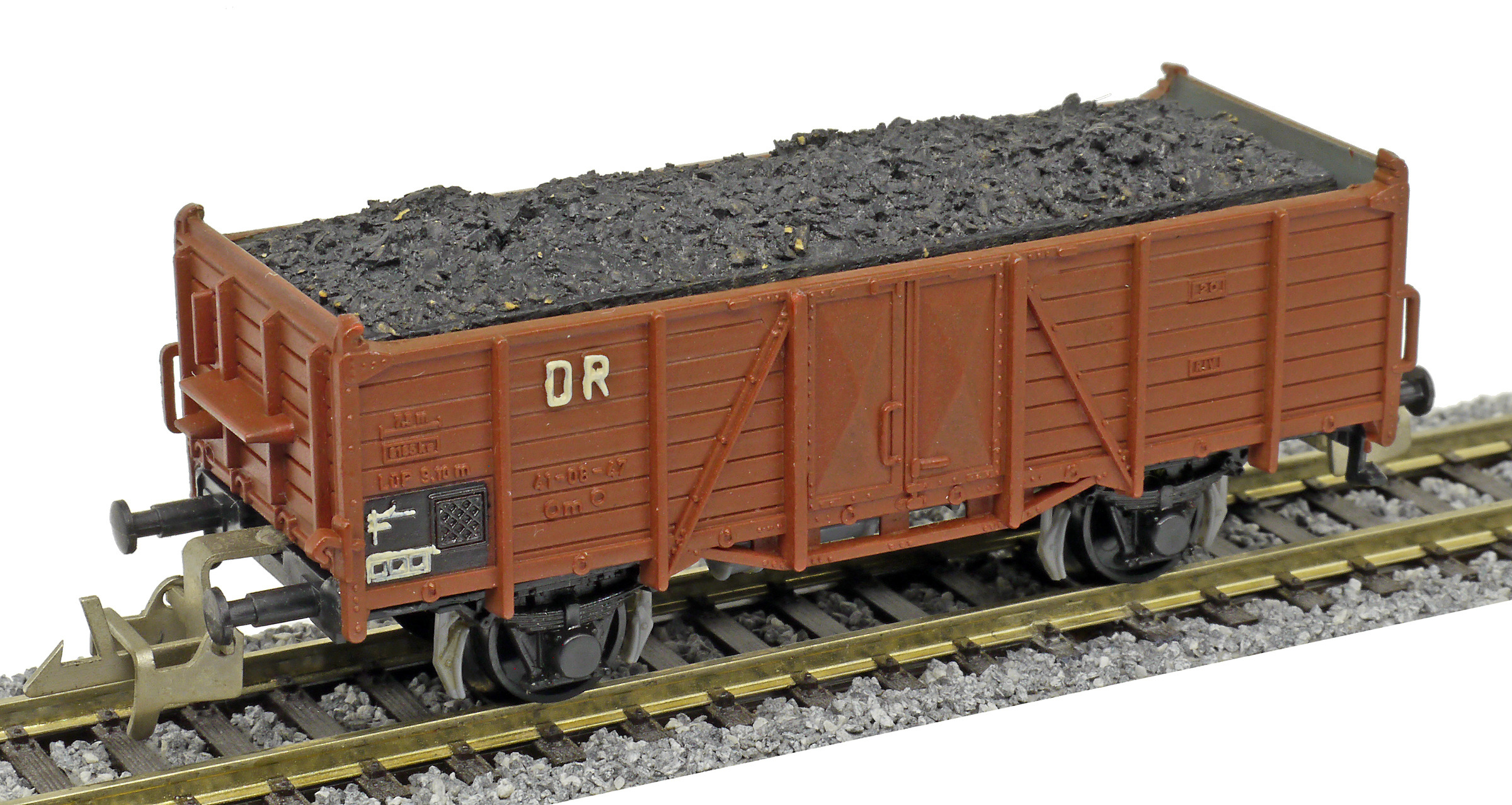 otevřený nákladní vůz červenohnědý ložený uhlím