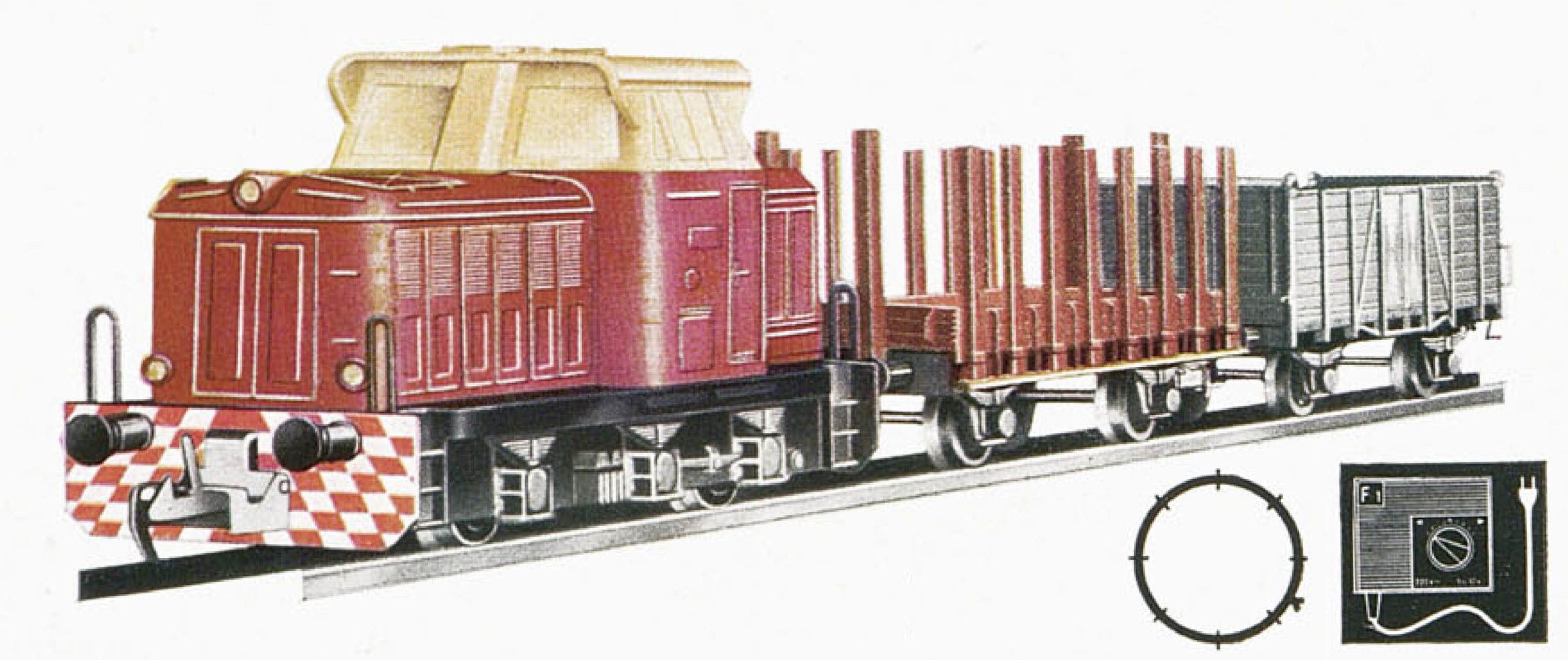 | set dieselové lokomotivy T334 a dvou nákladních vozů |