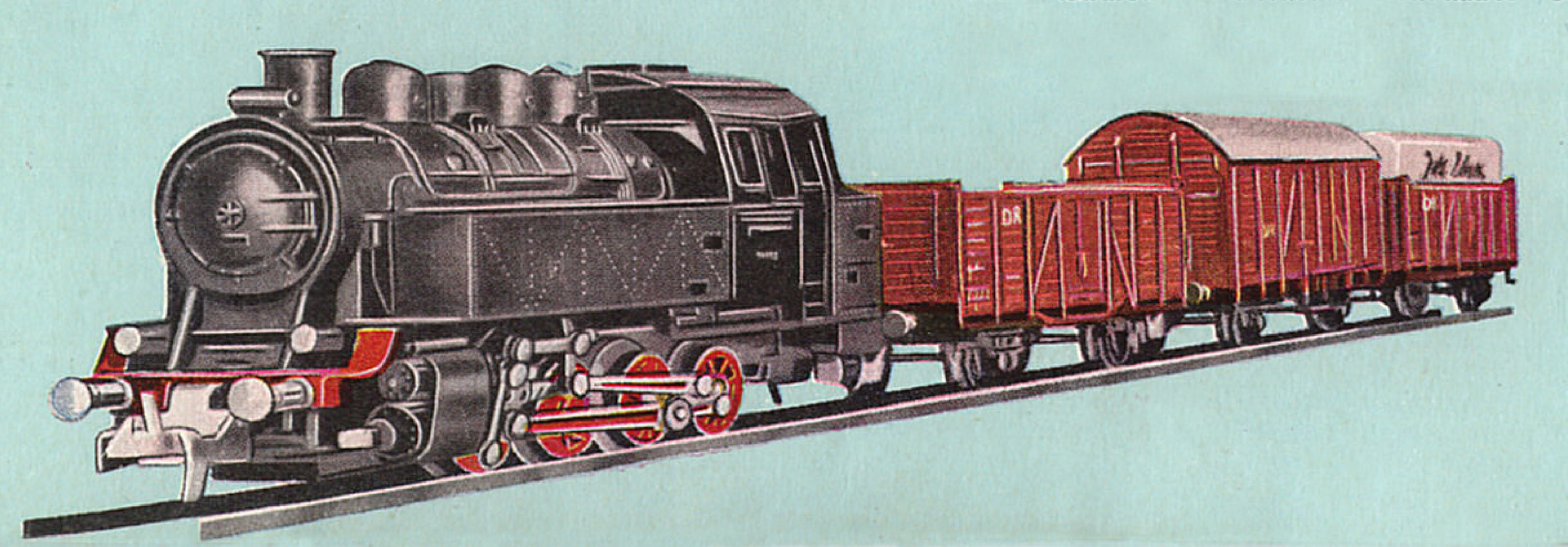| set parní lokomotivy BR 81 a tří nákladních vozů |