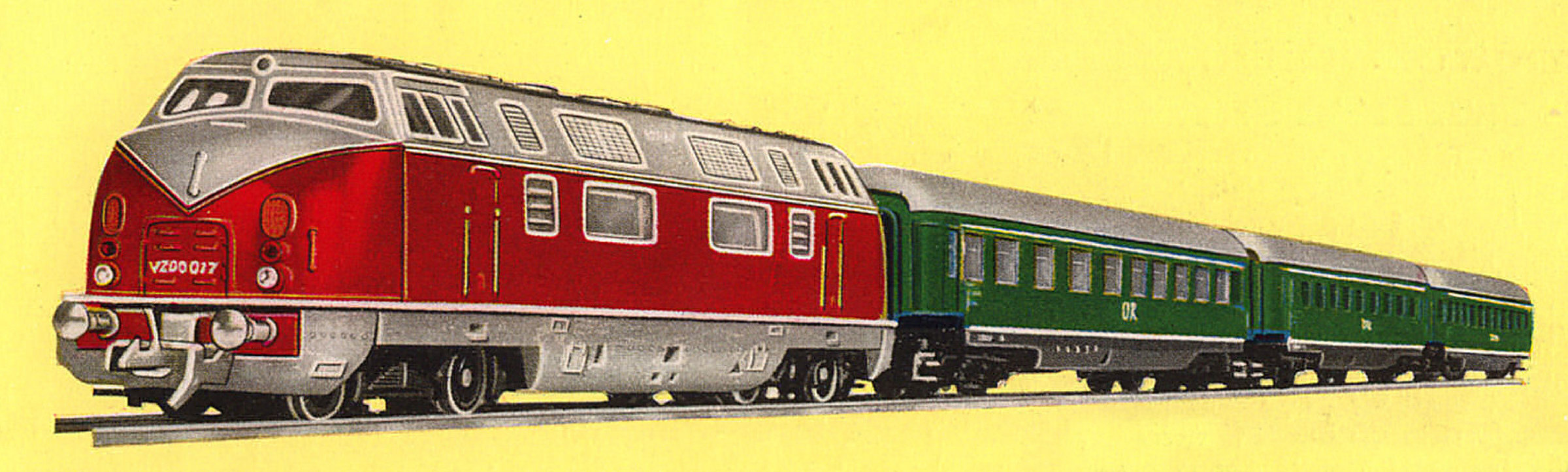 | set dieselové lokomotivy V 200 a tří rychlíkových vozů |
