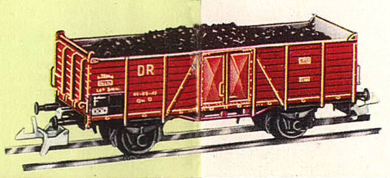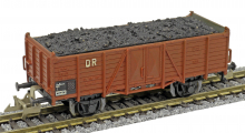 otevřený nákladní vůz červenohnědý ložený uhlím