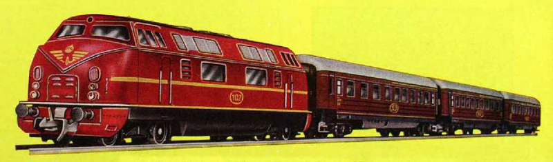 | set dieselové lokomotivy V200 a tří rychlíkových vozů |