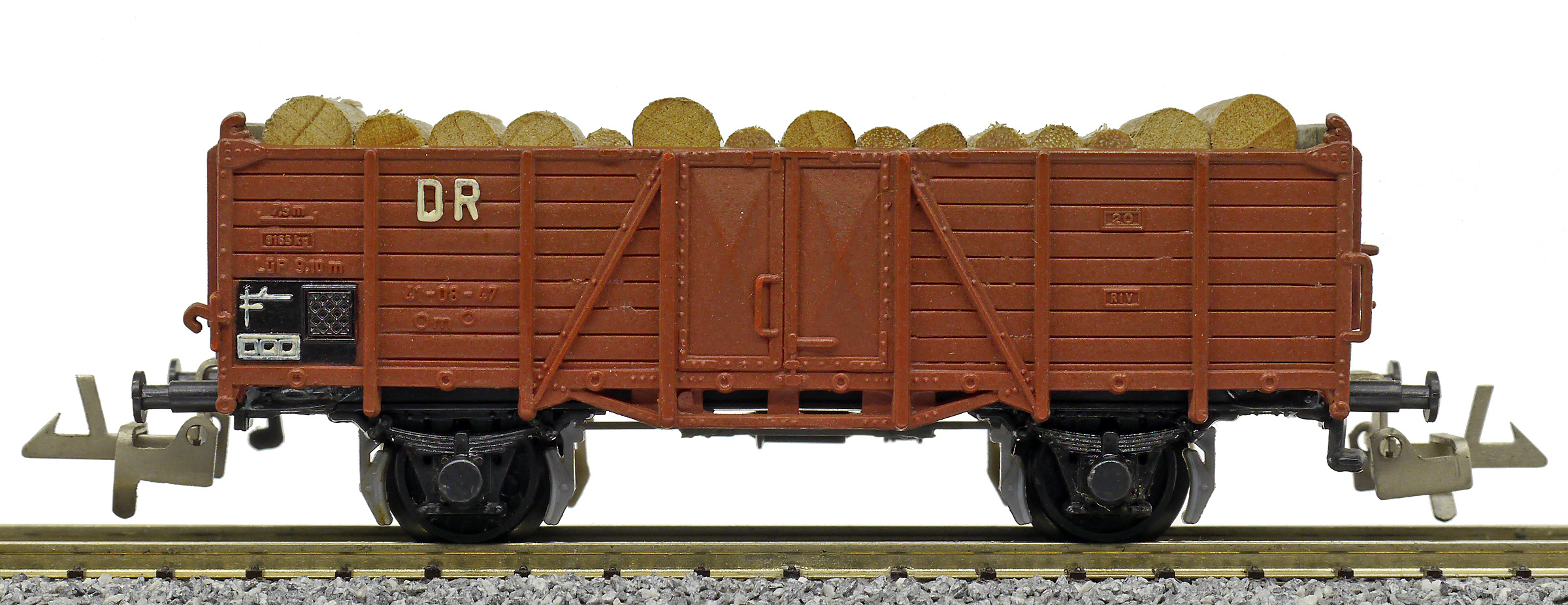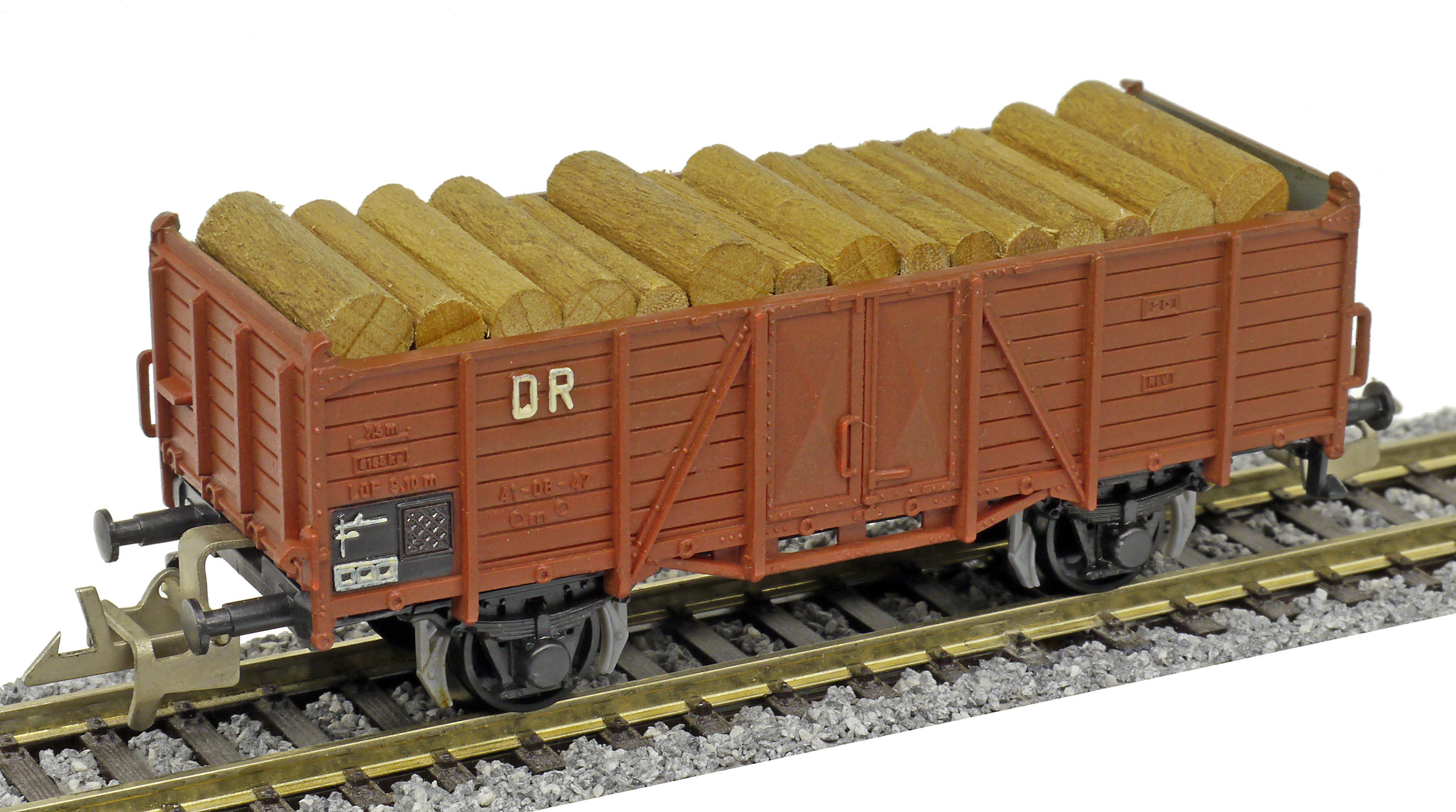 otevřený nákladní vůz červenohnědý s nákladem kulatiny