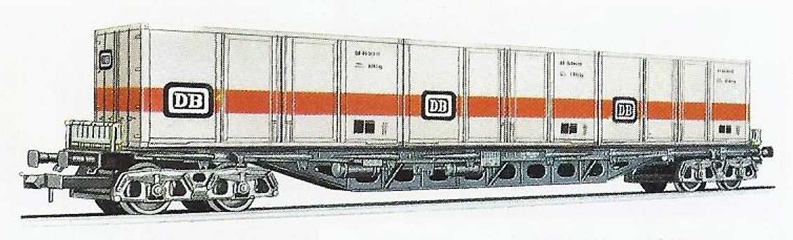 Popis   plošinový nákladní vůz s nákladem 3x 20' kontejnerů „DB“