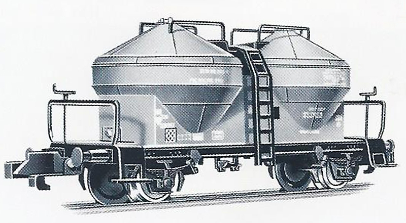 | • KDs 54 | - | plošinový vůz dvounápravový běžné stavby se sklopnými nízkými stěnami a s krátkými klanicemi |