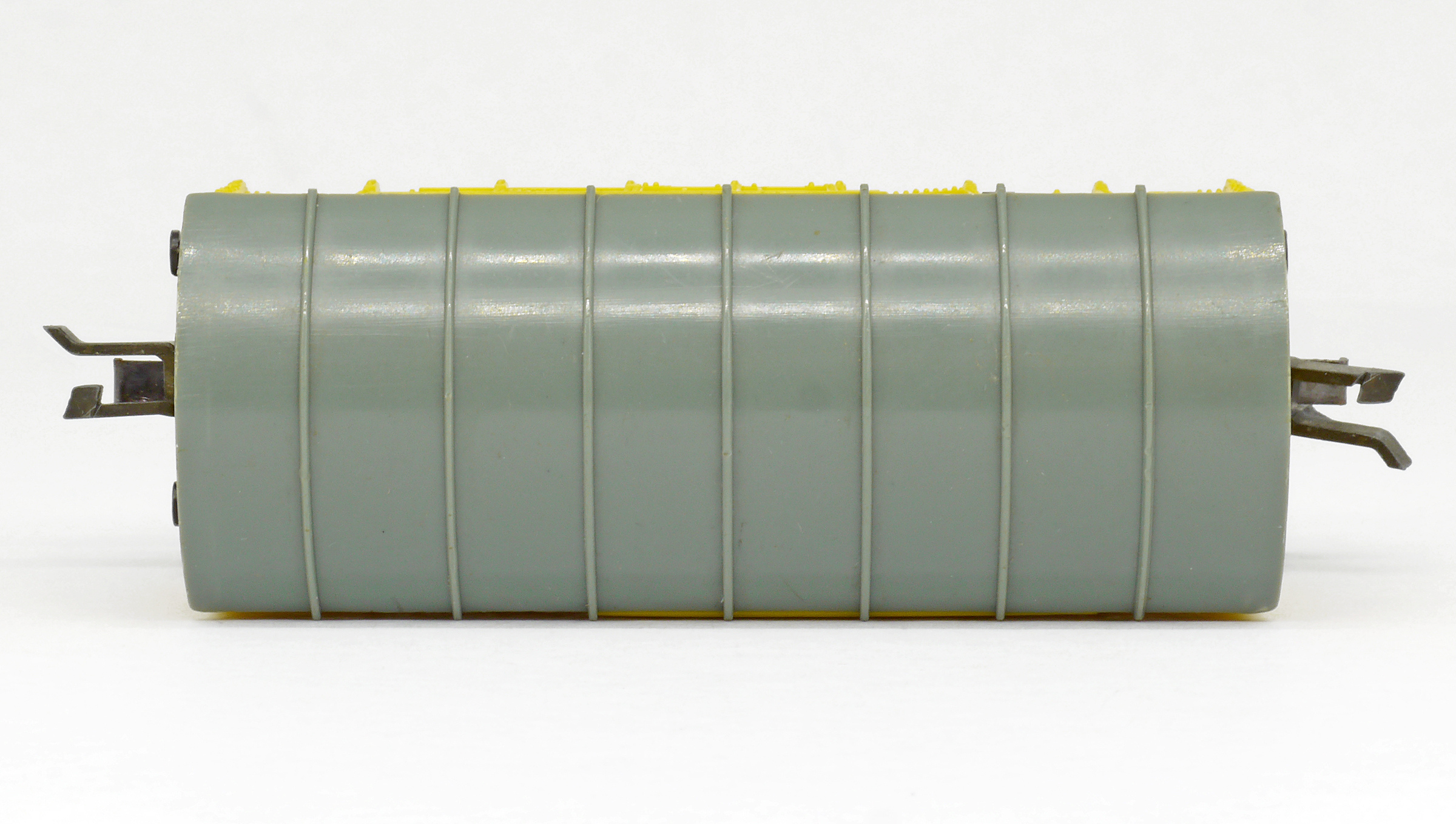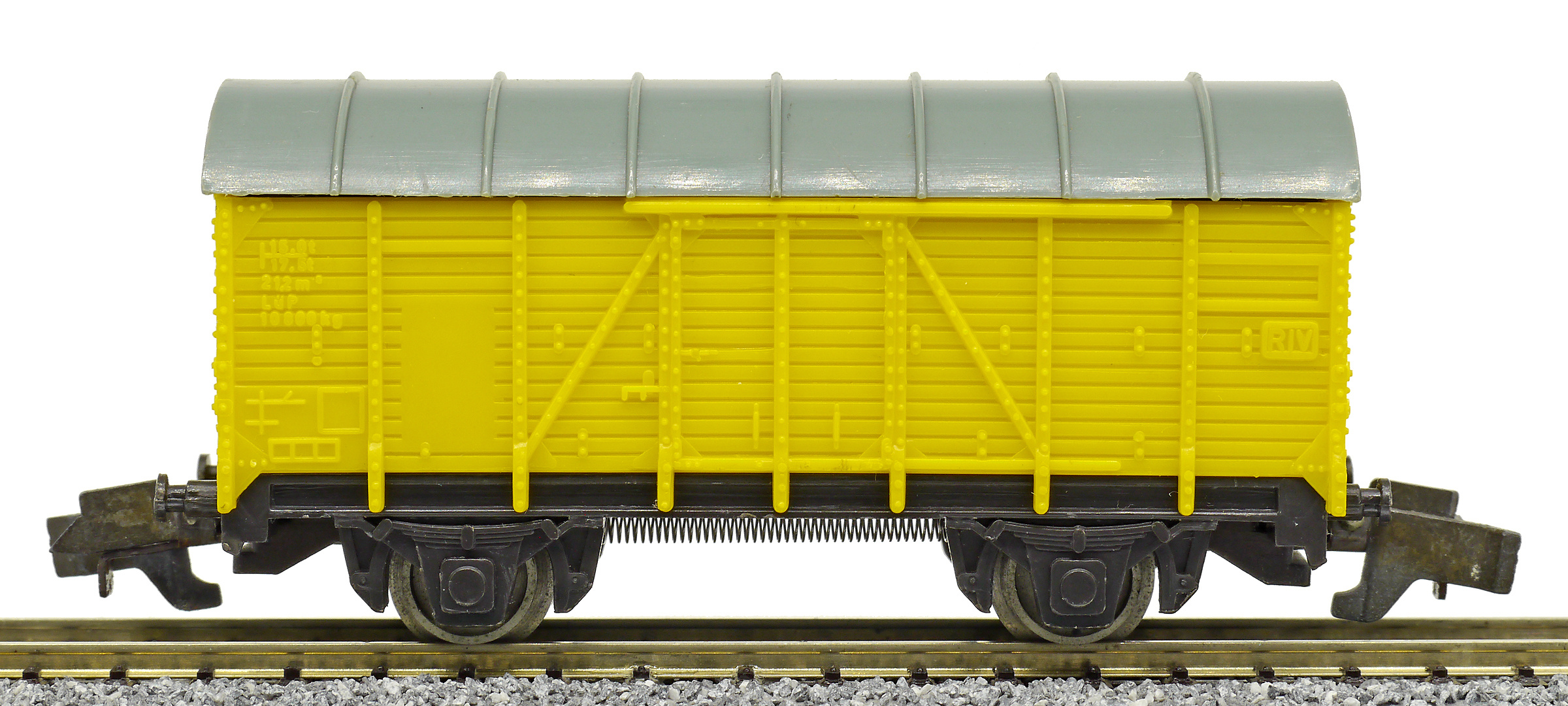 krytý nákladní vůz žlutý s šedou střechou se švy