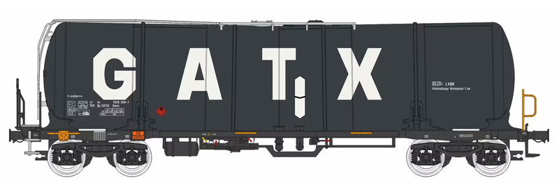 | kotlový vůz černý s logem „GATX“ |