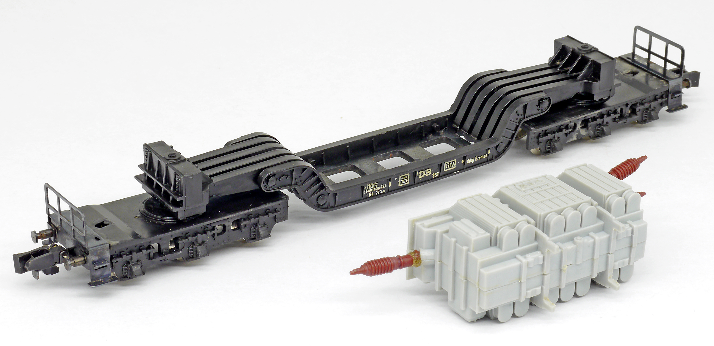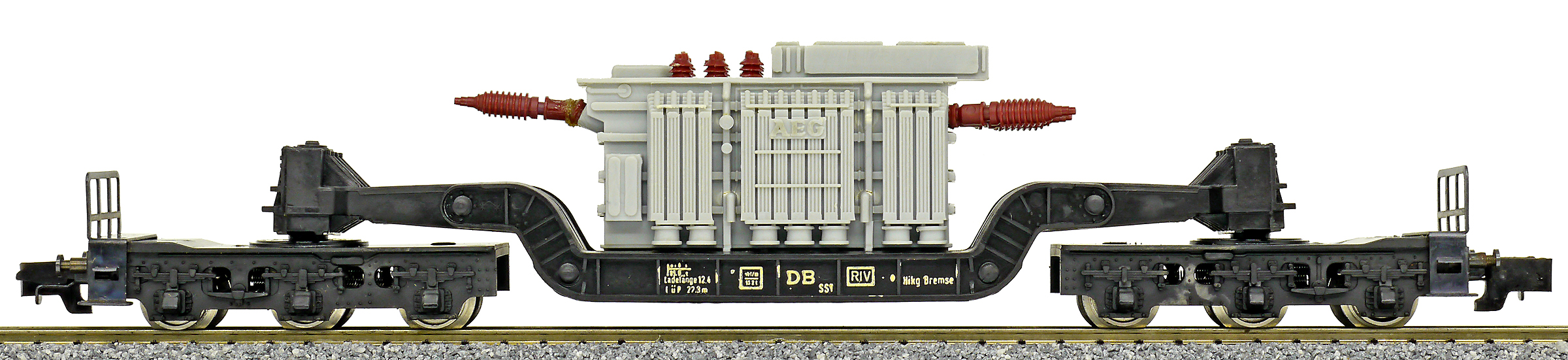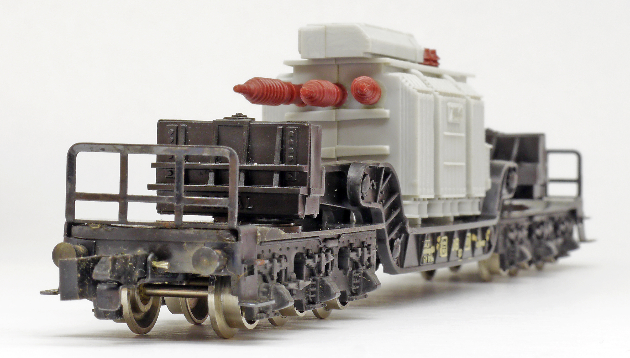 hlubinový nákladní vůz černý ložený transformátorem „AEG“