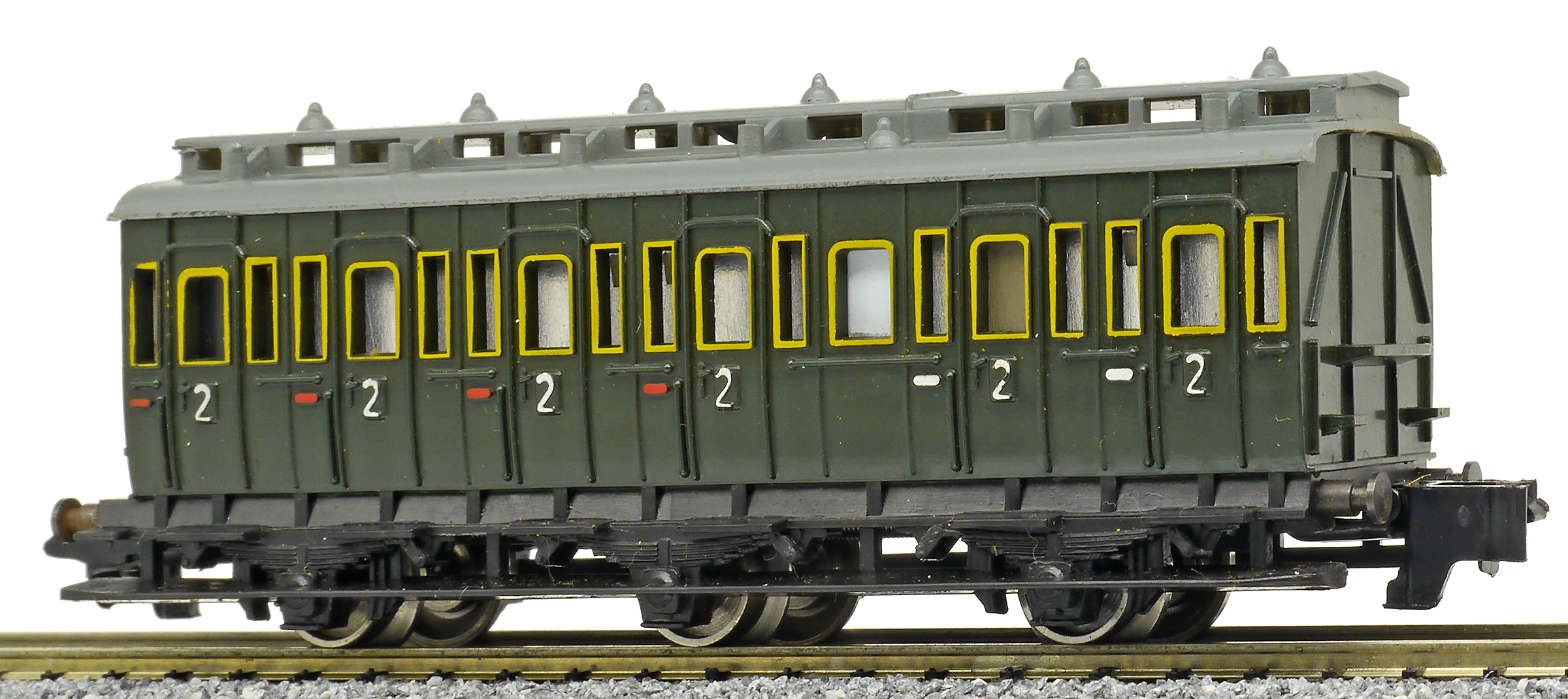 oddílový osobní vůz zelený s šedou střechou 2. tř.