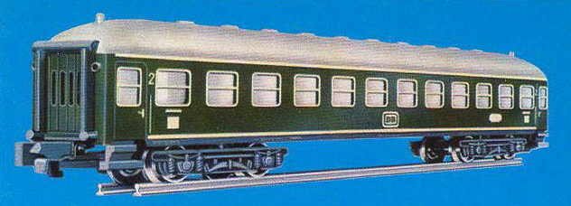 rychlíkový vůz zelený s šedou střechou 2. tř.