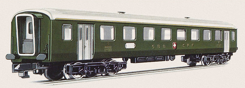 rychlíkový vůz zelený se světle šedou střechou 1. tř.