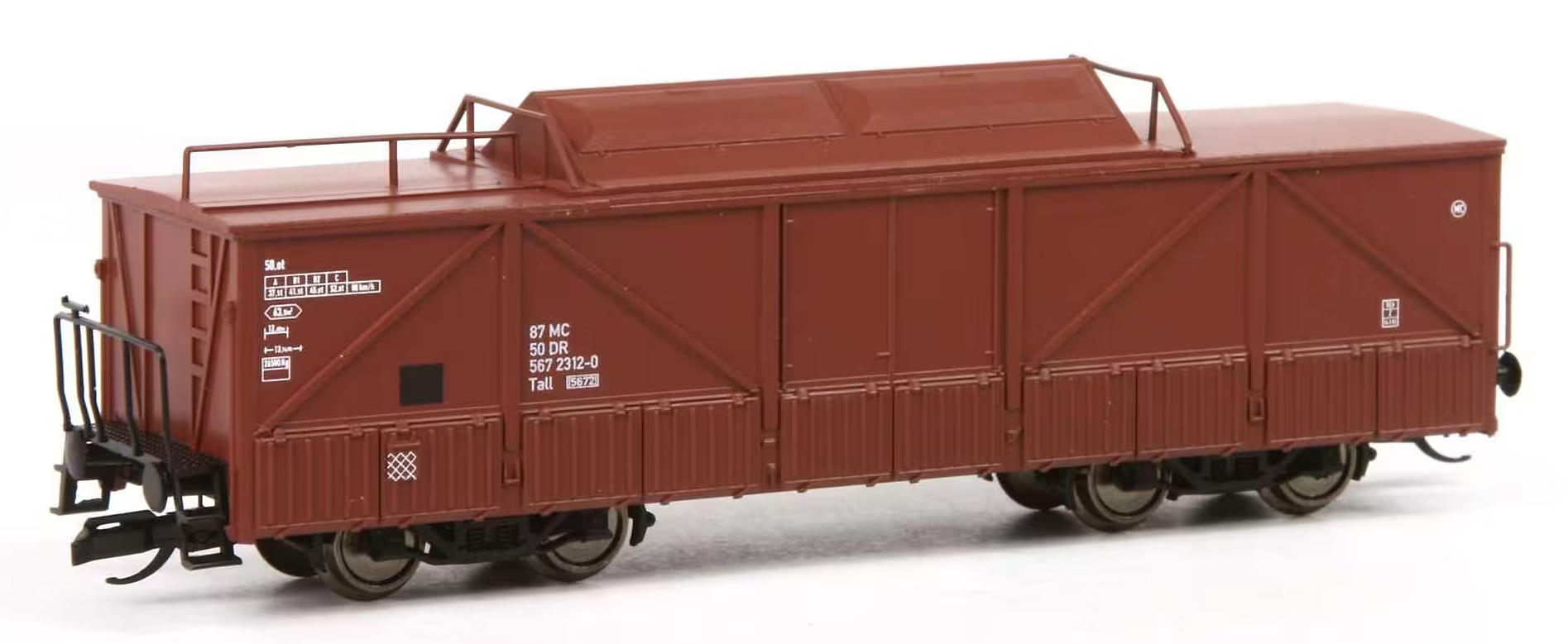 | nákladní vysokostěnný vůz červenohnědý se zakrytím |