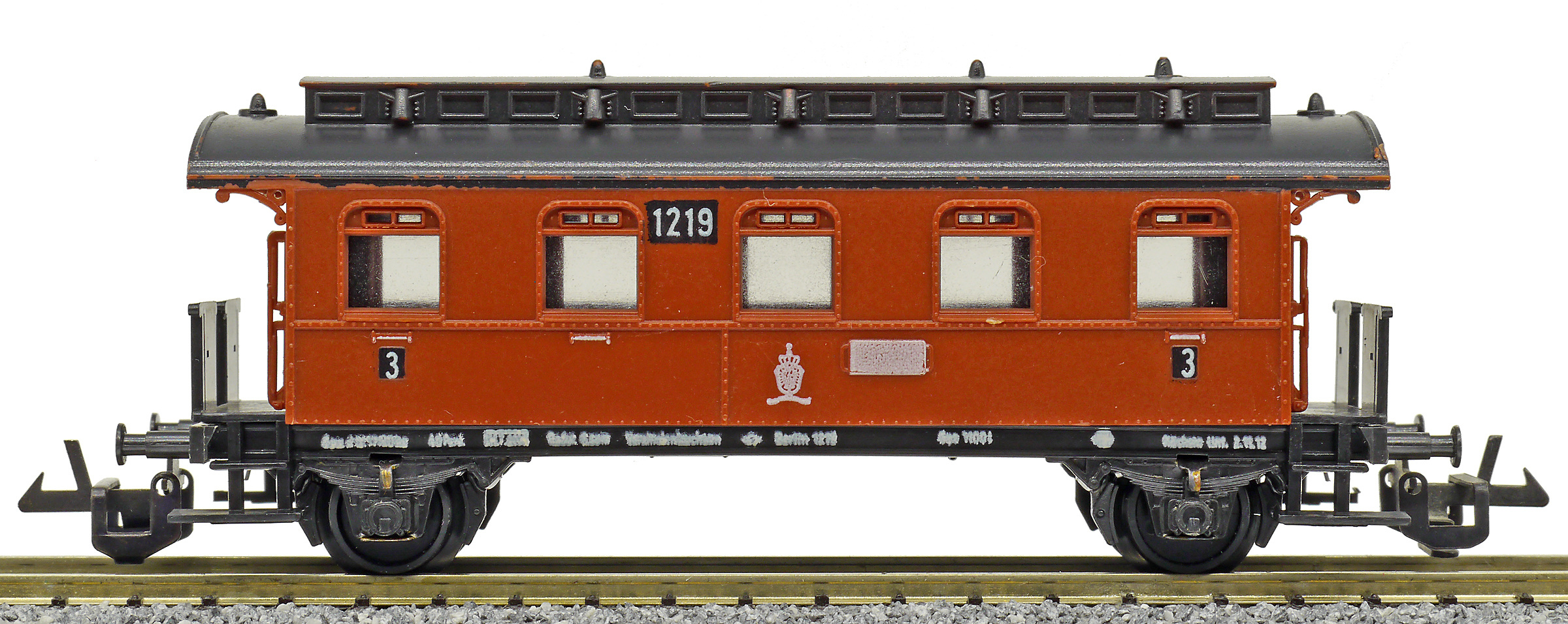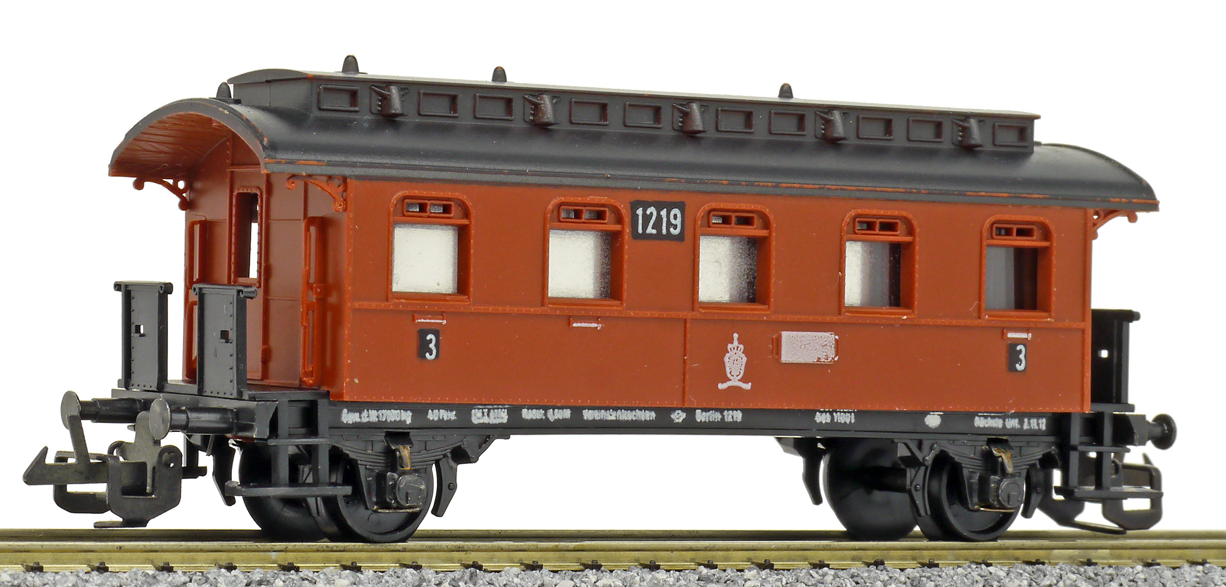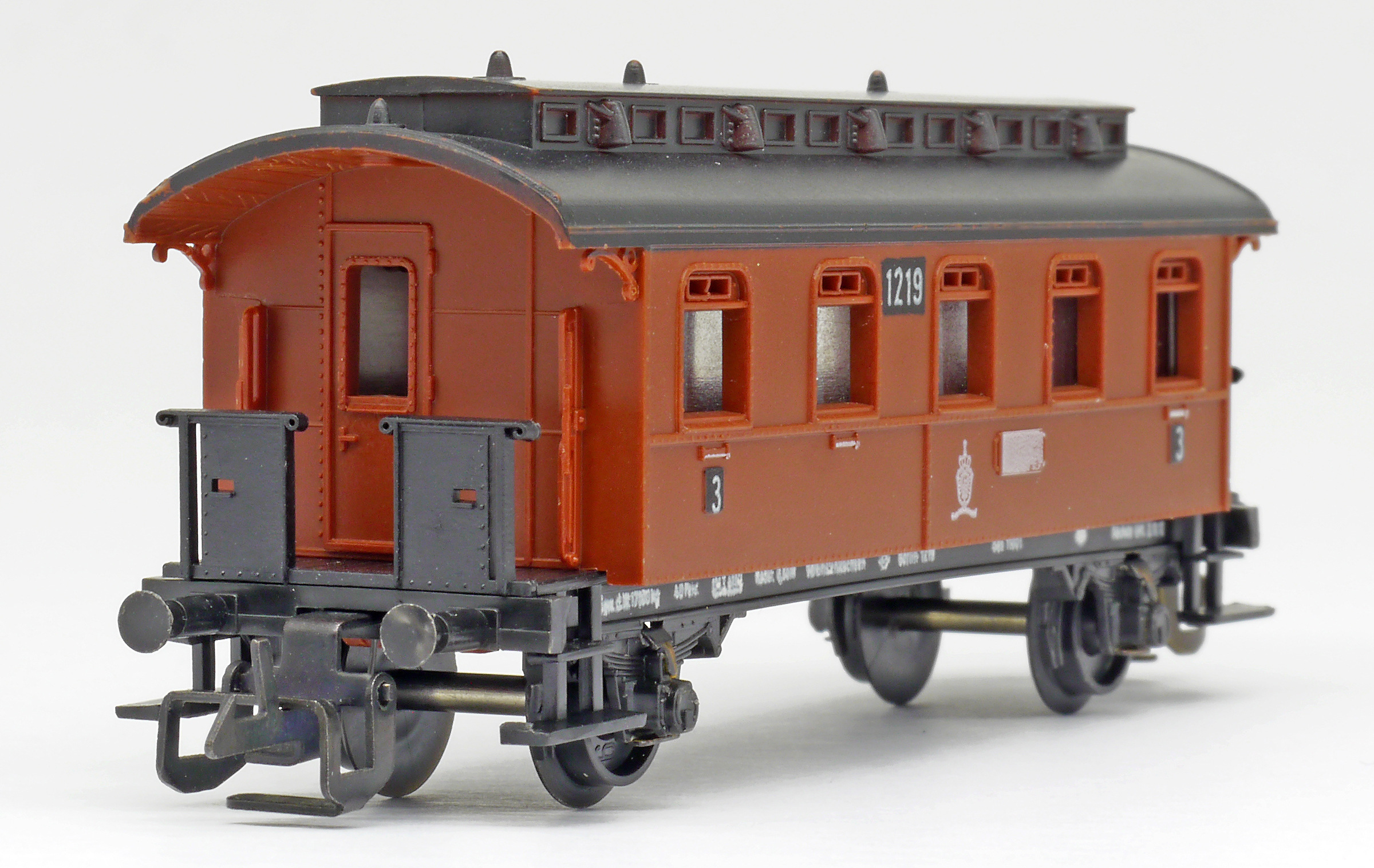 | osobní vůz červený s černou střechou 3. tř. |