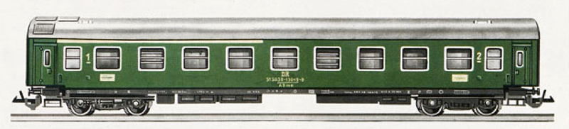 | rychlíkový vůz zelený s šedou střechou 1./2. tř. |
