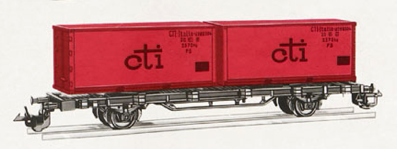 | nákladní plošinový vůz černý se dvěma 20' kontejnery „cti“ |
