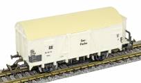 | nákladní chladící vůz bílý s krémovou střechou a s brzdařskou budkou na přepravu ryb „Seefische“ |