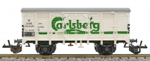 | krytý nákladní vůz bílý s šedou střechou „Carlsberg“ |