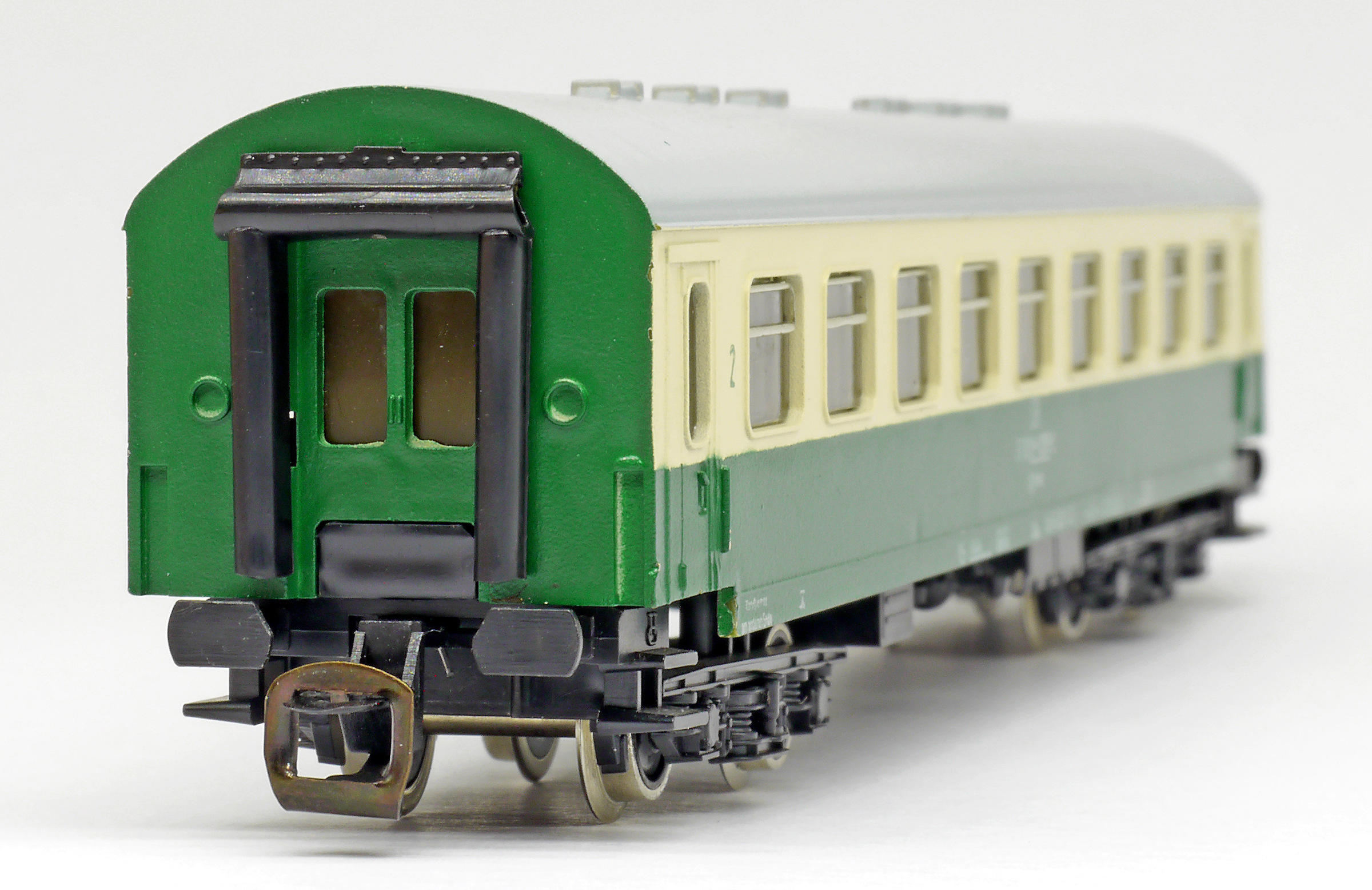 | rekonstruovaný osobní vůz zelený-slonová kost s šedou střechou |