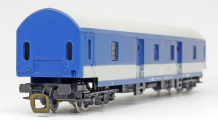 | poštovní vůz modrý s bílým pásem a s šedou střechou |