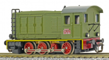 | dieselová lokomotiva zelená se žlutým rámem a černým pojezdem |