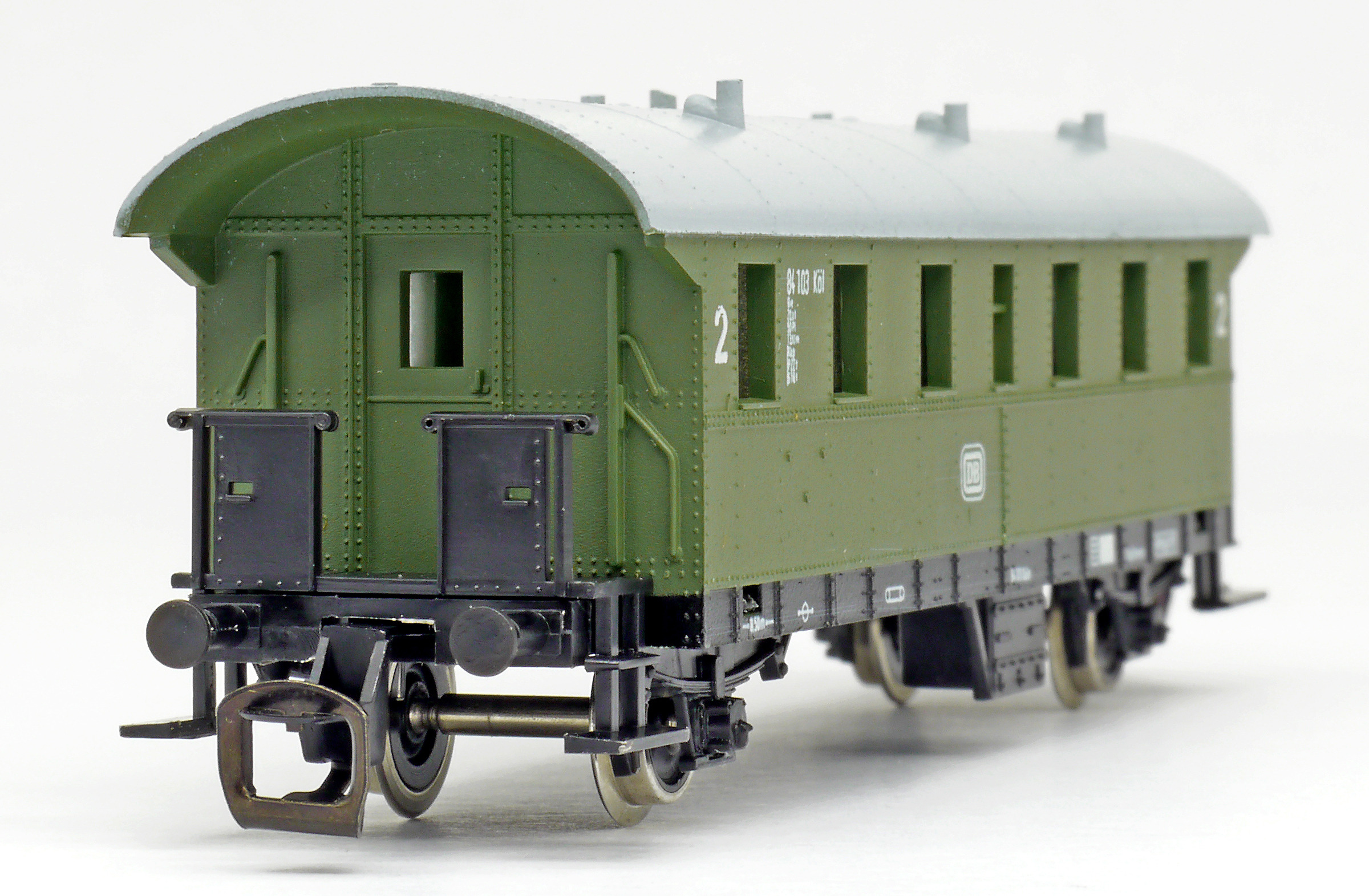 osobní vůz zelený se světle šedou střechou 2. tř.