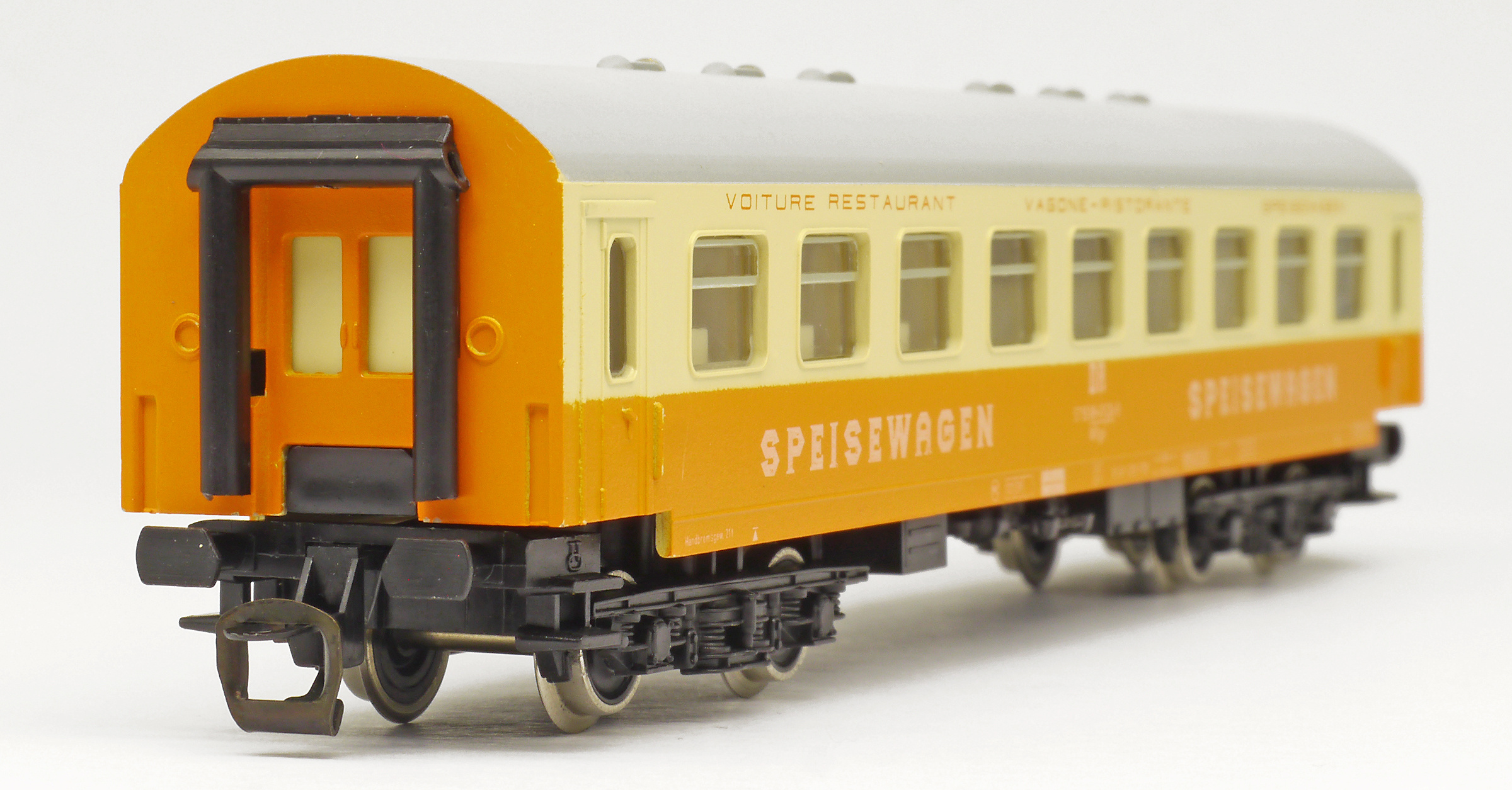 | jídelní vůz oranžový-slonová kost s šedou střechou „MITROPA“ |