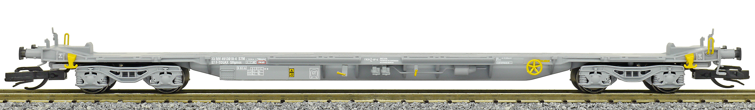 | • 33 87 4913010-4 | → | nákladní, s podvozky, pevný rozchod, soukromý vůz, RIV, PPV |