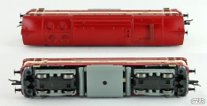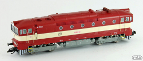 Popis   dieselová lokomotiva vínově červená s krémovým pásem, šedé podvozky