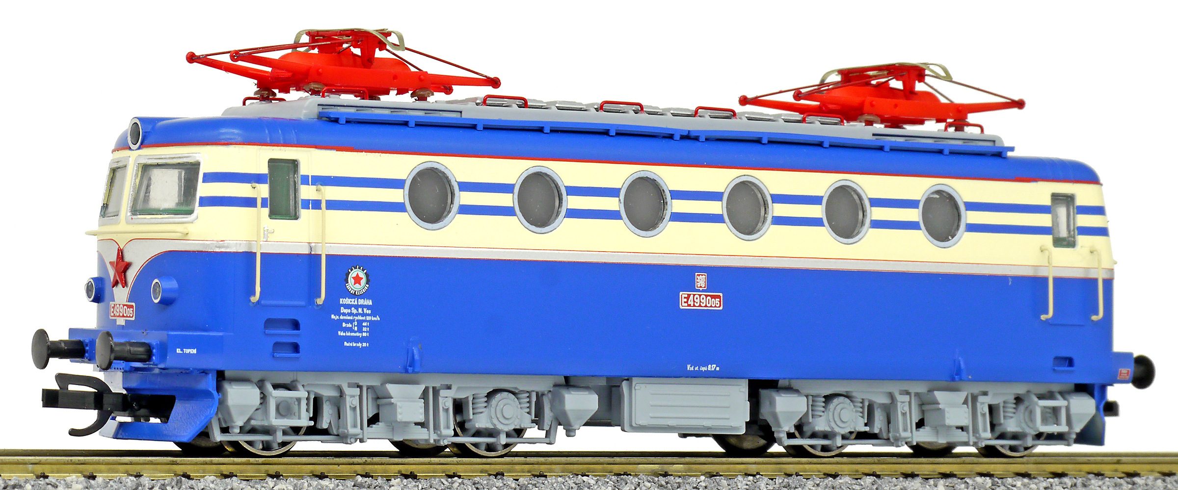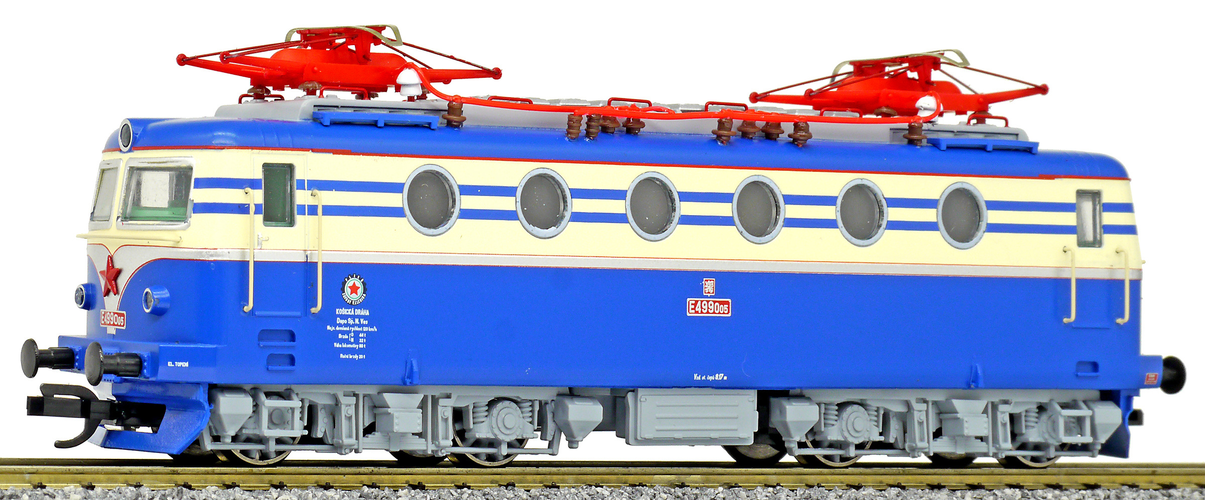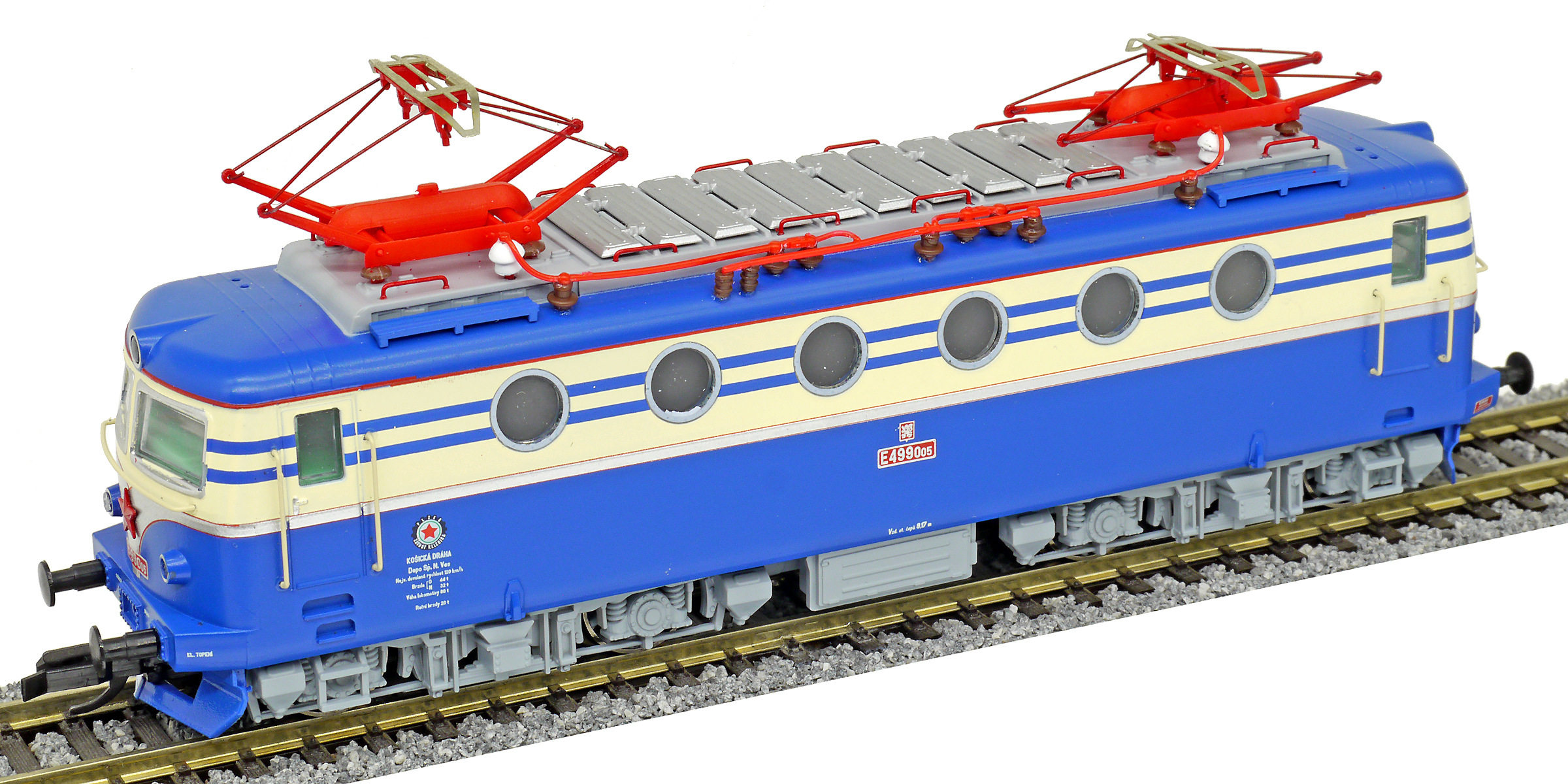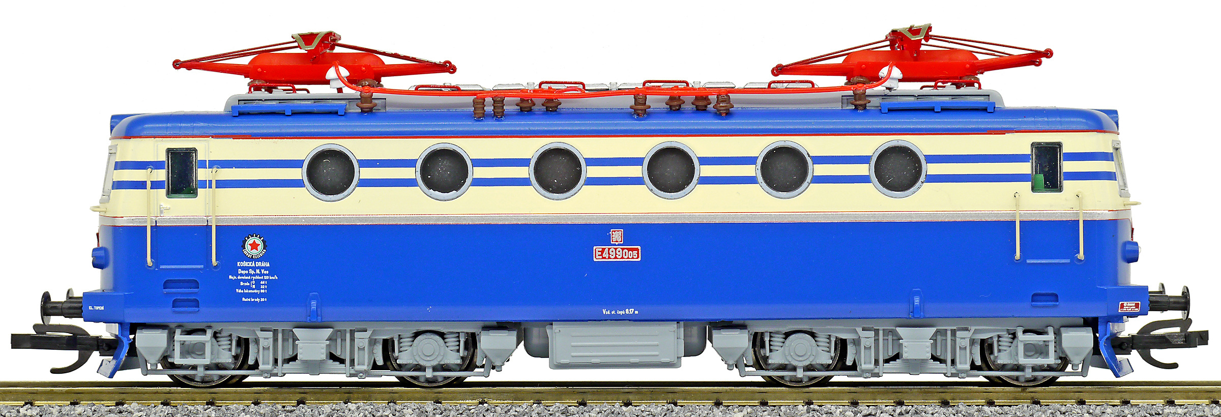 Popis   elektrická lokomotiva v nátěru modrá-slonová kost