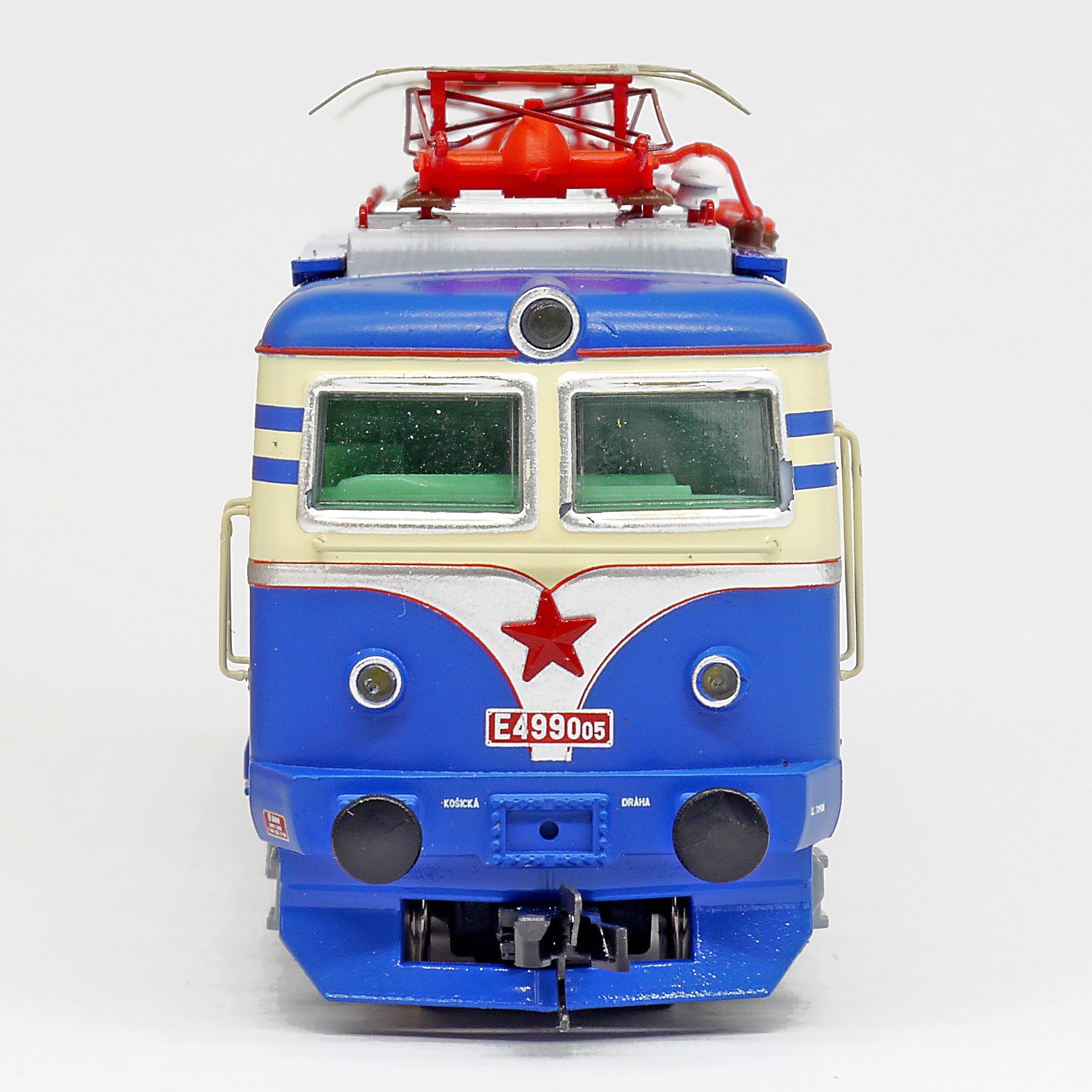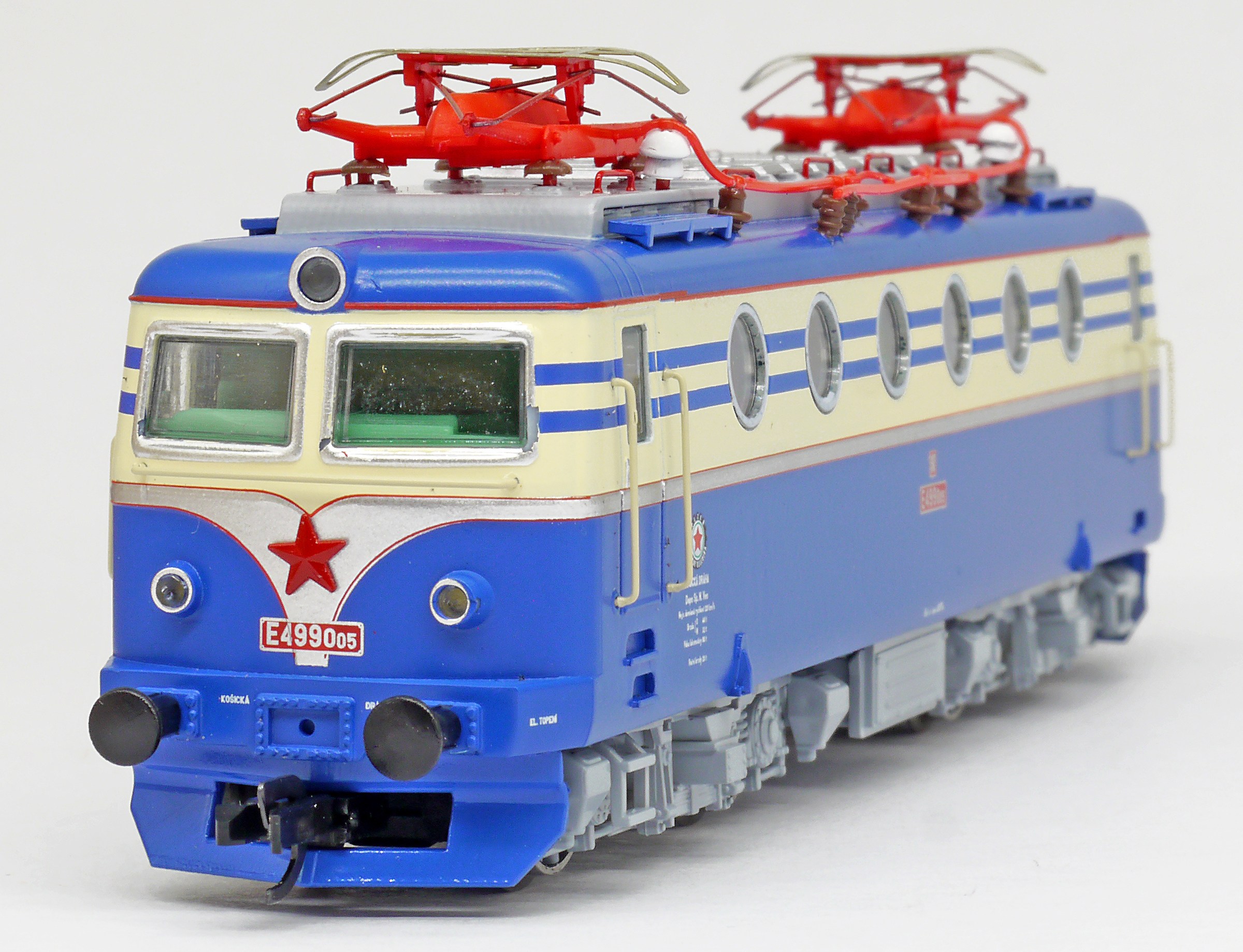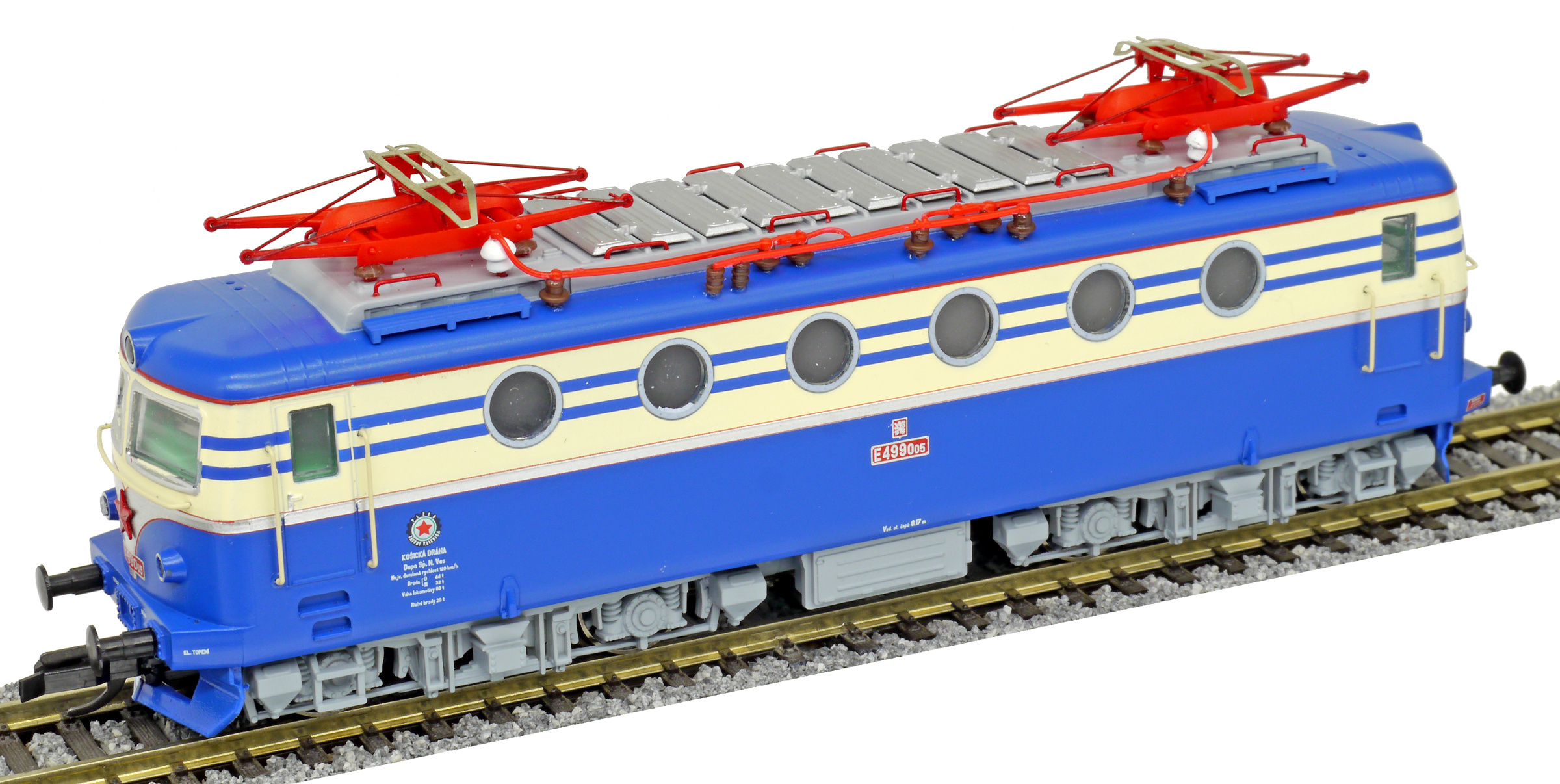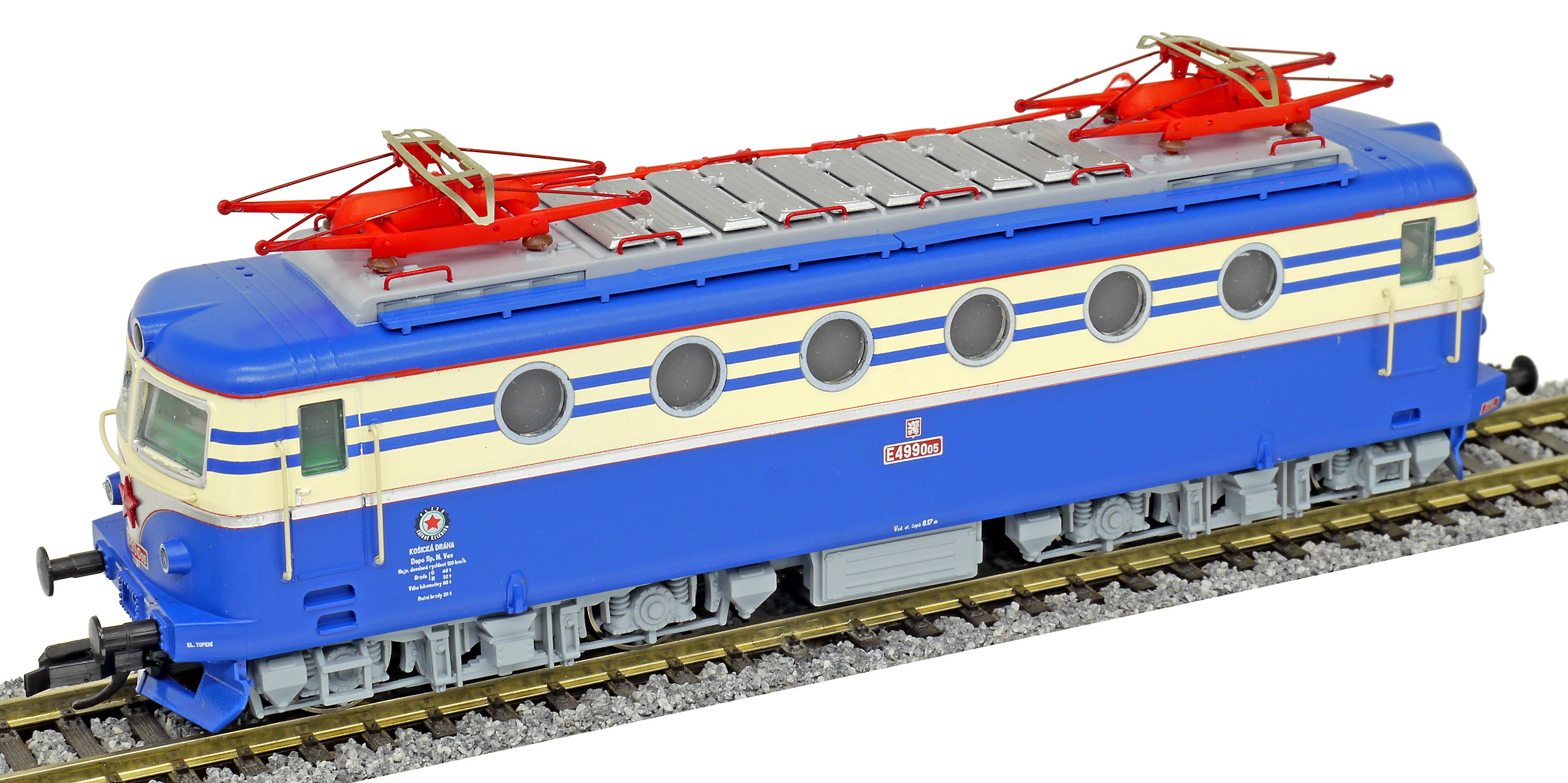 Popis   elektrická lokomotiva v nátěru modrá-slonová kost