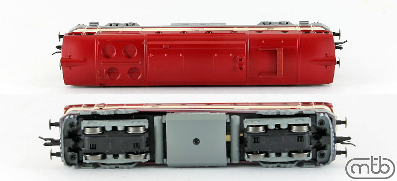 měřítko 1:120 - rozchod kolejí 12 mm osvětlení - 3 reflektory vpředu, 2 světla vzadu, přepínatelné podle směru jízdy 4 hnané nápravy 0 bandážovaných náprav kinematika krátkého spřáhla (KKK) podle normy NEM 358 digitální rozhraní podle NEM 658 s konektorem PluX16 setrvačník 137 mm - celková délka modelu přes nárazníky 4 - celkový počet náprav nebo rozložení náprav