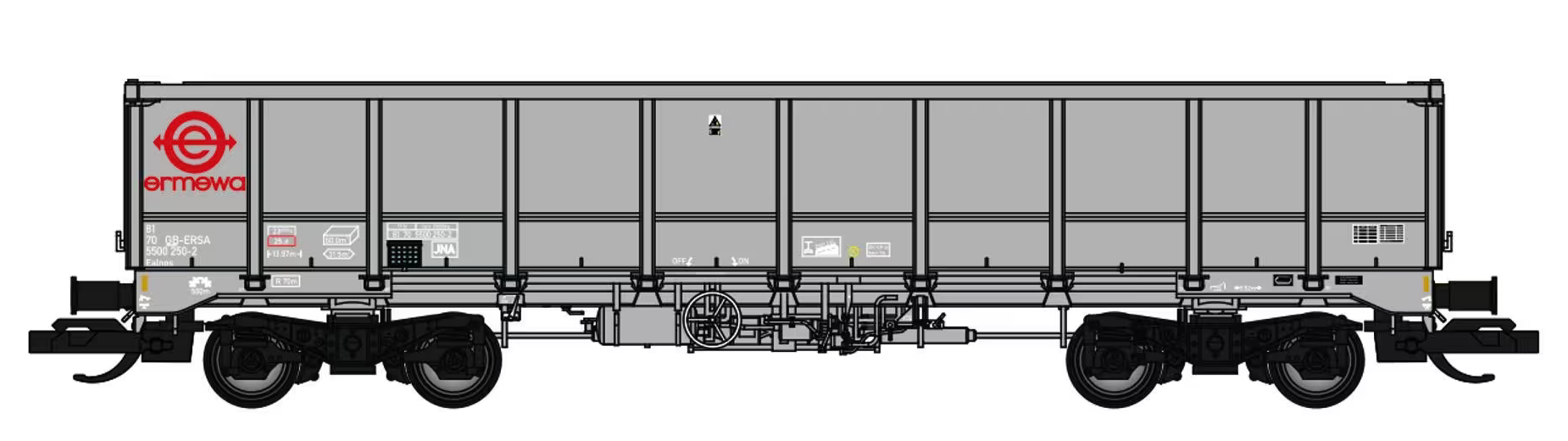 | vysokostěnný nákladní vůz šedý s logem „ermewa“ |