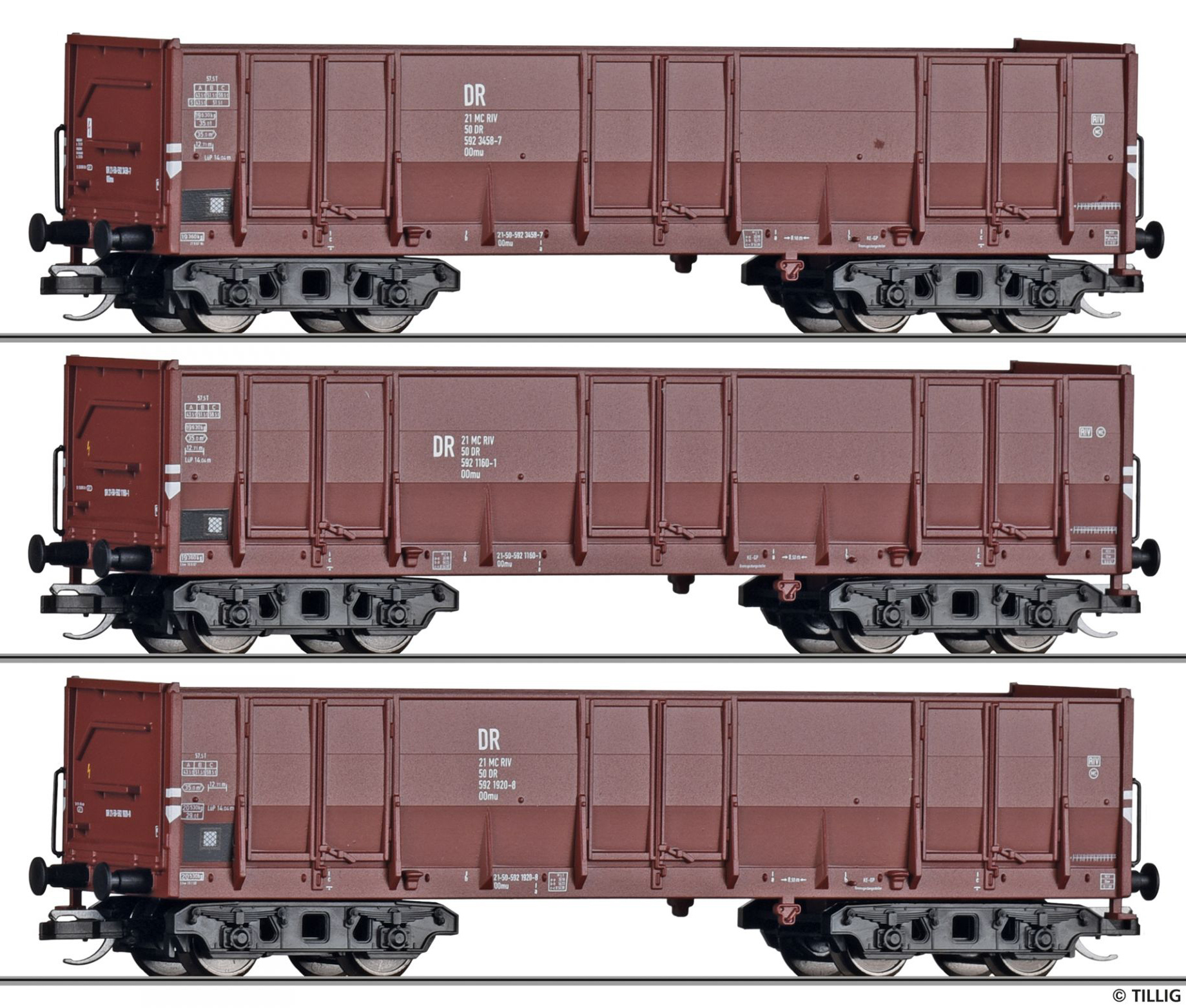 | set tří otevřených nákladních vozů |